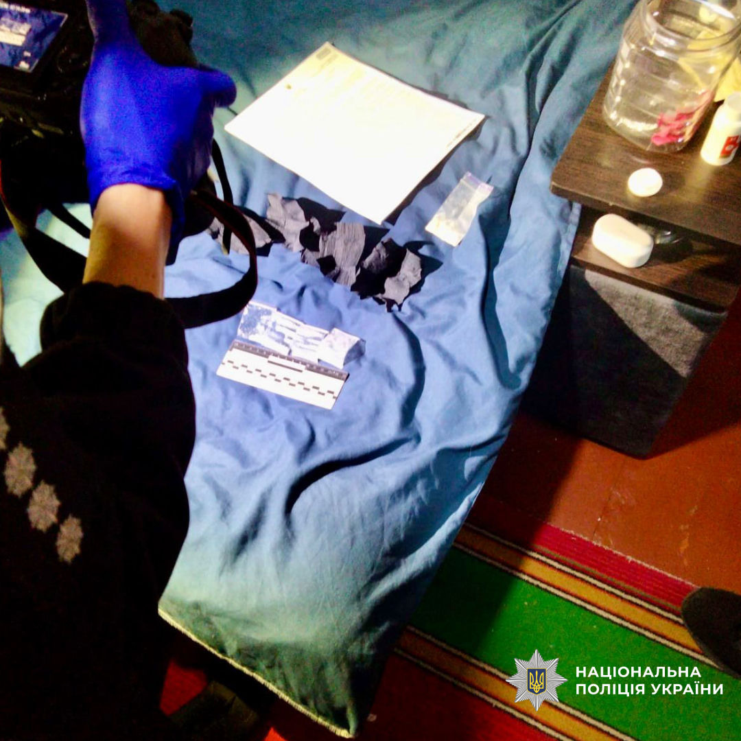 У ході слідчих дій у квартирі правоохоронці виявили та вилучили паперові згортки з канабісом, а також 230 зіп-пакетів з психотропною речовиною PVP.