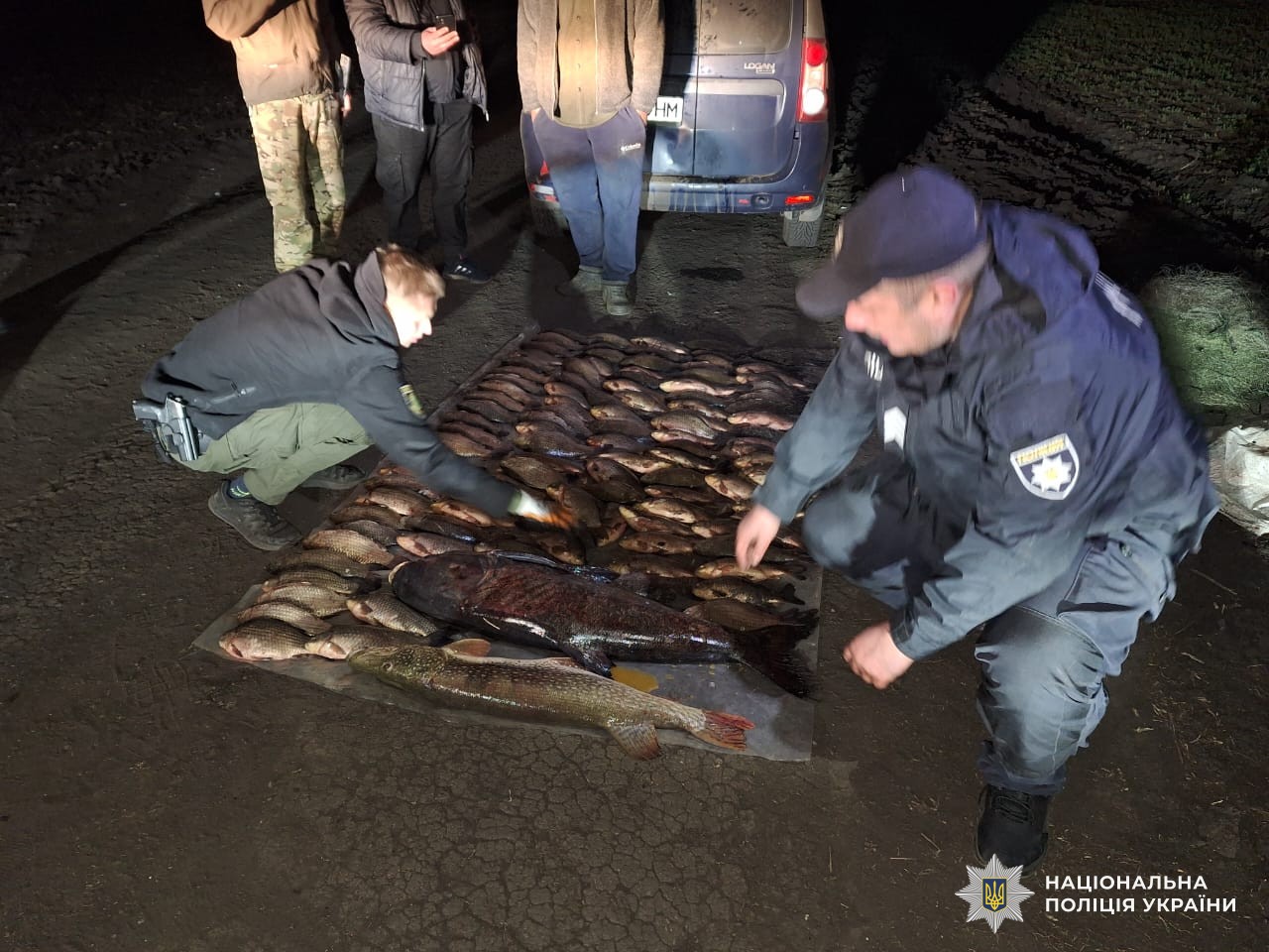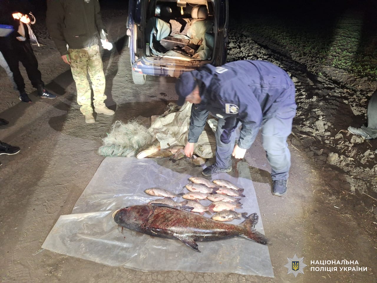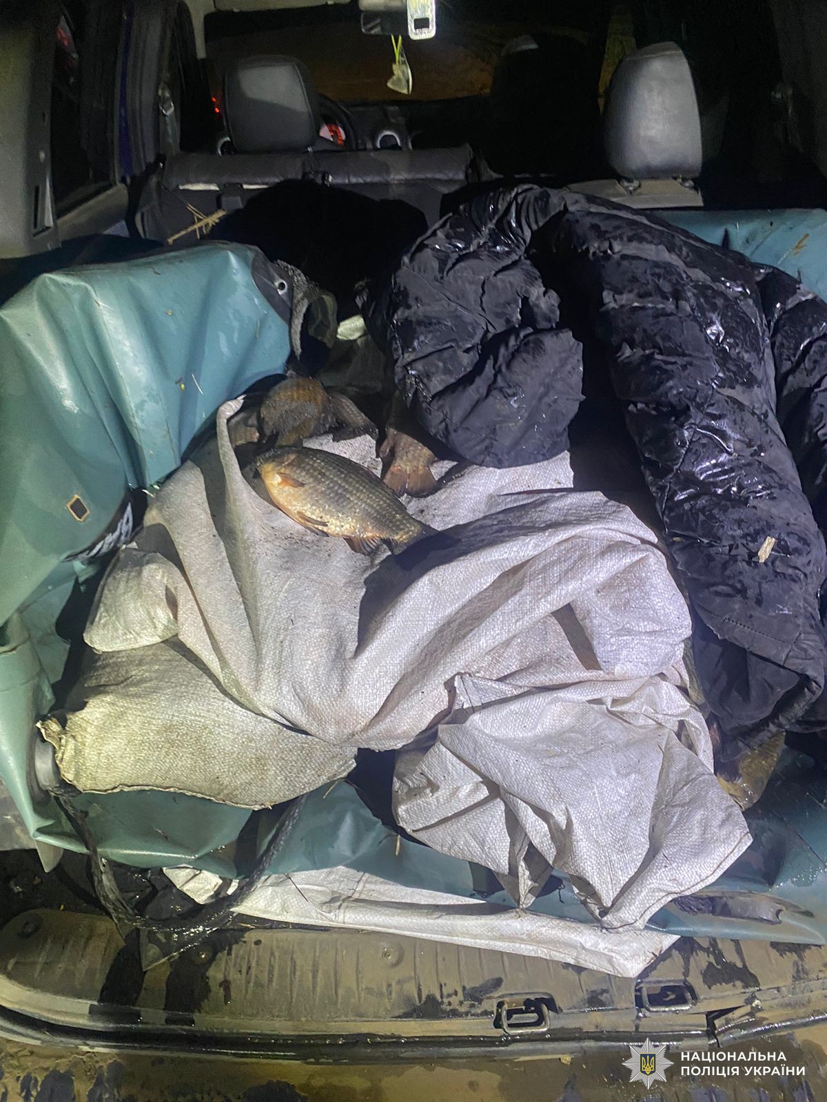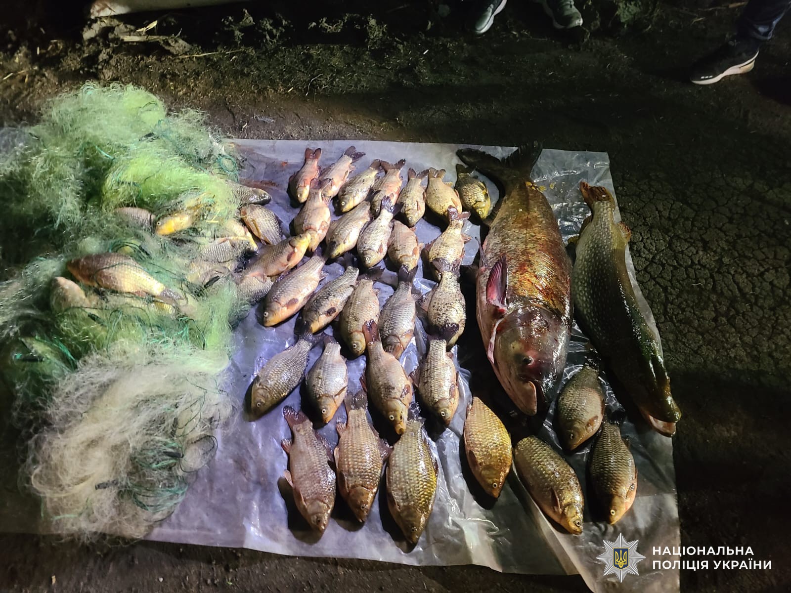 Поліцейські вилучили сітки, човен та 110 одиниць різних видів риб, серед яких карась, товстолоб, щука та інші.
