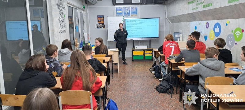 Працівники ювенальної превенції Харківського РУП №3 розповіли учням Шевченківського району про алгоритм дій у разі сигналу «Повітряна тривога» або виникнення надзвичайних ситуацій.