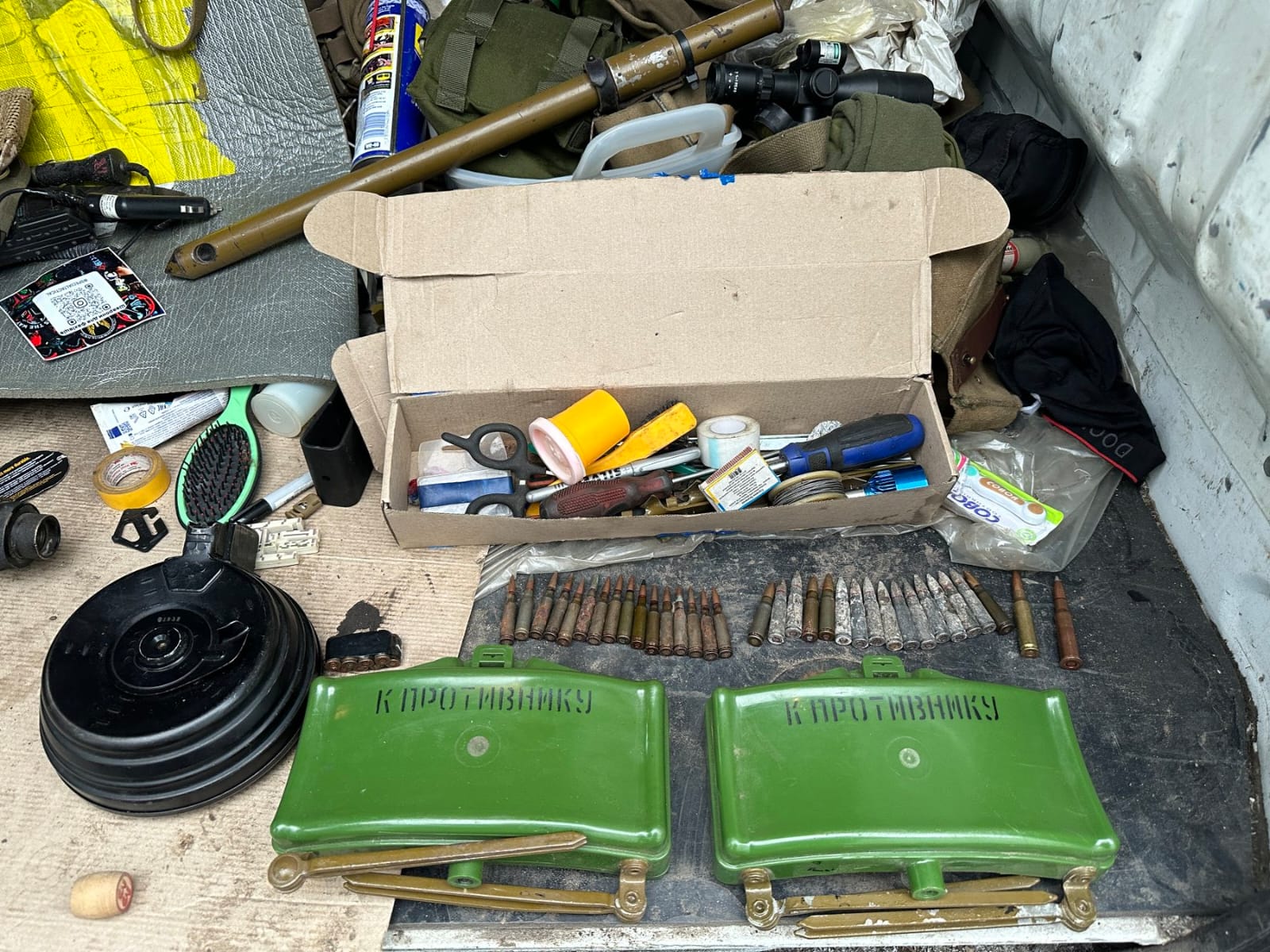 Під час огляду автомобіля «Renault Мaster», яким керував 45-річний громадянин, у багажному відділенні виявили дві протипіхотні осколкові міни МОН-50, споряджений магазин з 50 набоями калібру 7,62 та понад 30 набоїв розсипом різного калібру.