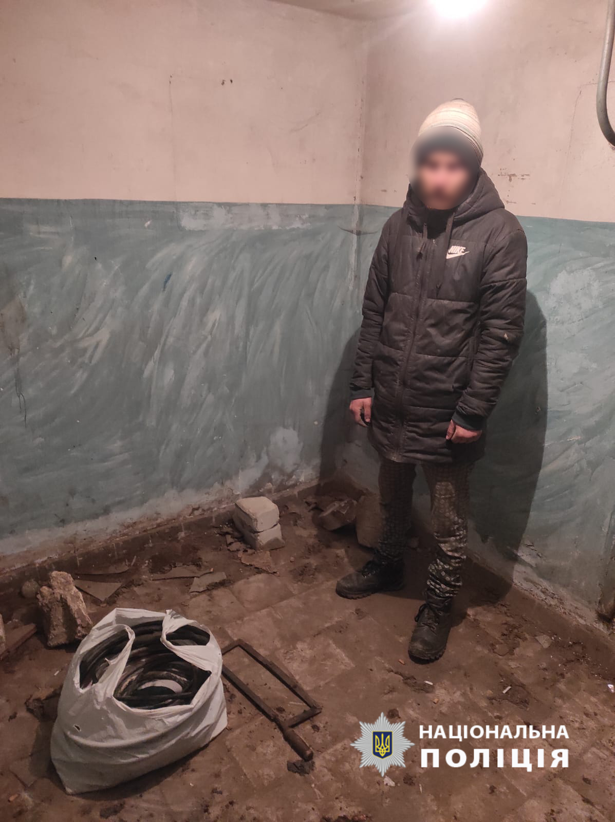 11 січня близько 05:00 в підвалі будинку по вулиці Шариковій спрацювала сигналізація. Оперативники відділу поліції № 1 ХРУП № 2 прибули на місце події та викрили чоловіка, який тримав в руках інструмент та пакет з кабелем, ще один моток кабелю знаходився поблизу.
