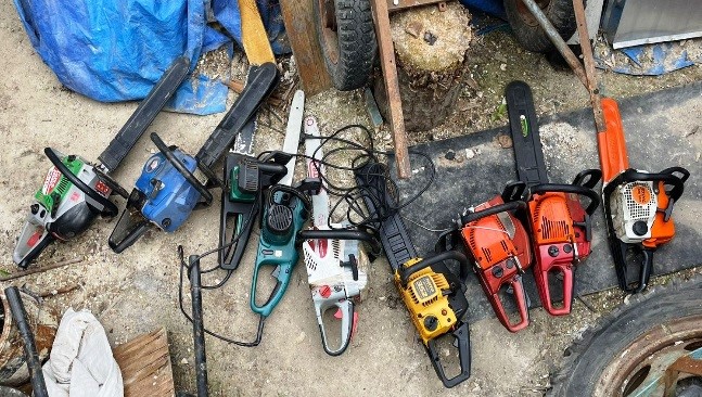 Під час проведення обшуків вилучені мобільні телефони, планшети, ноутбук, бензопили, записи з анкетними даними осіб та контактними номерами.