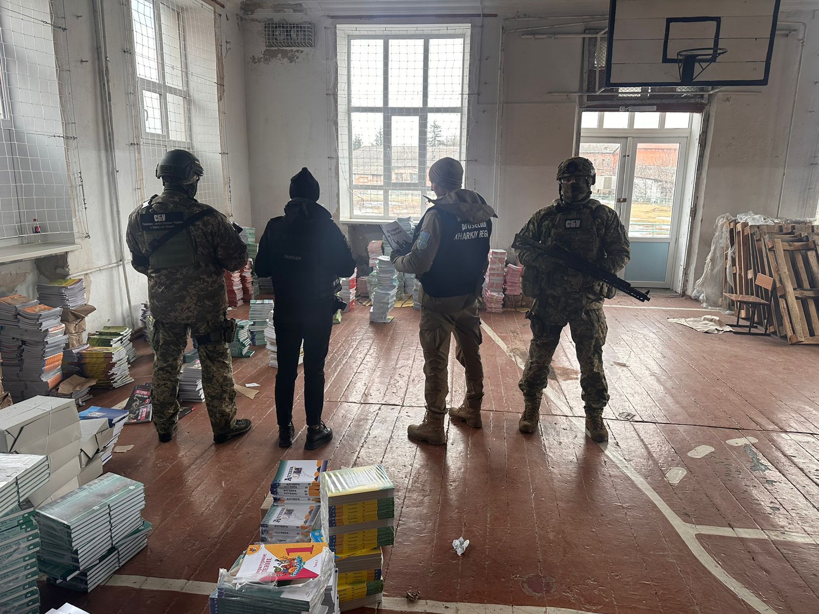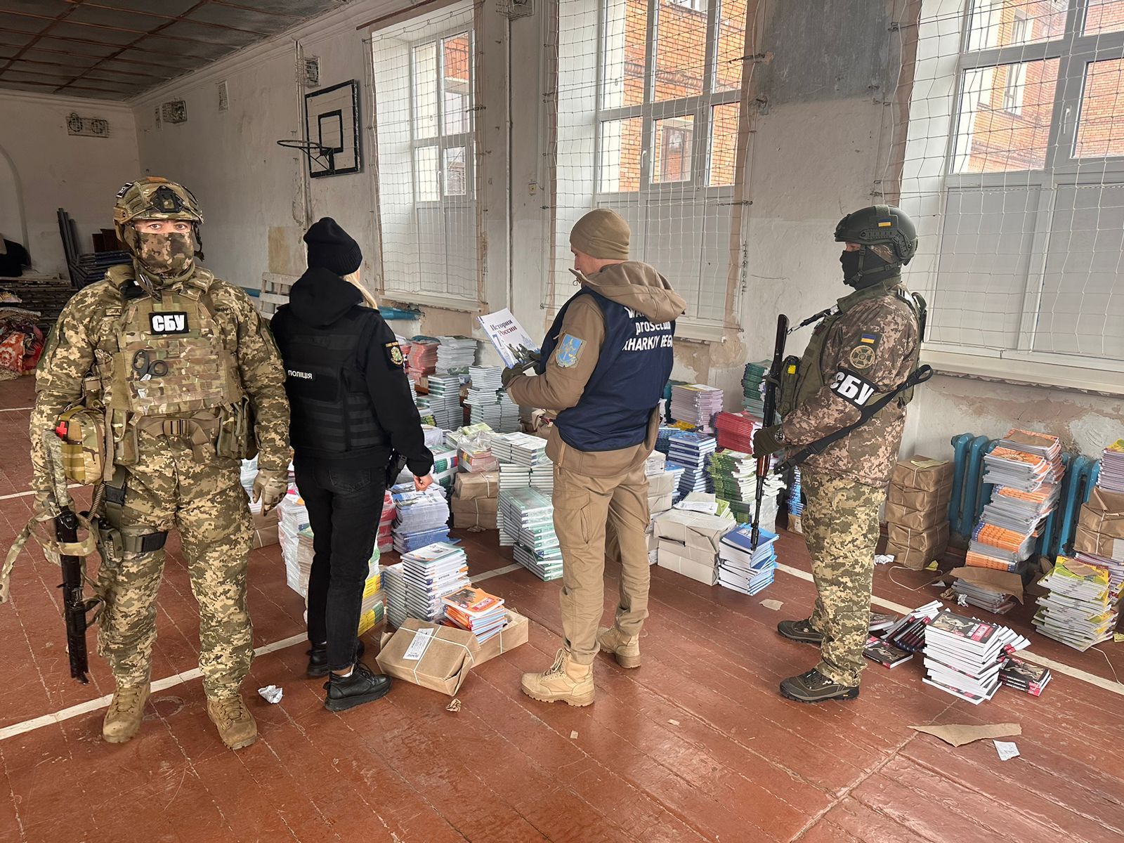 Поліцейські вилучили близько 600 російських підручників з приміщення закладу освіти у місті Вовчанськ Харківської області