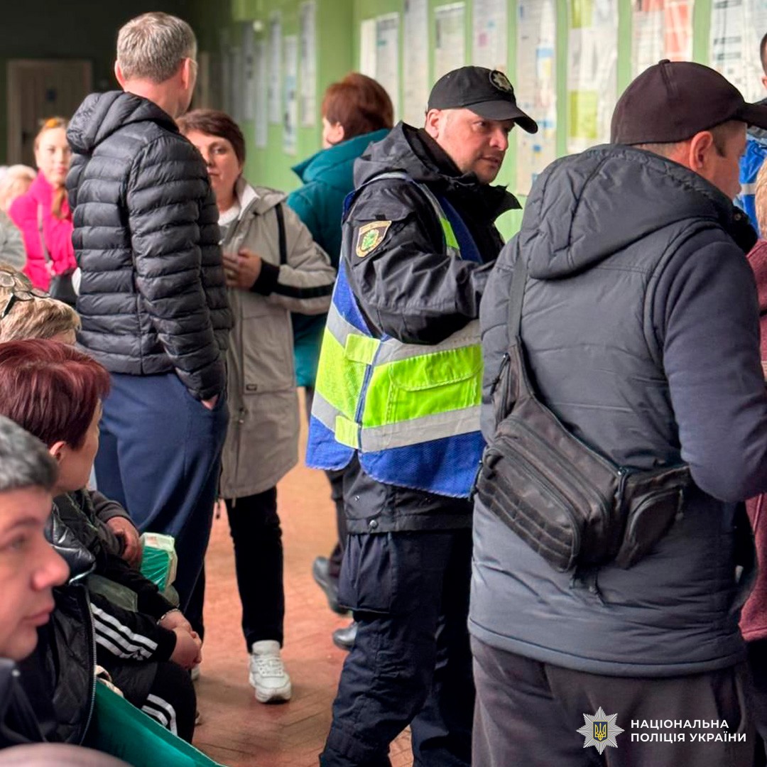 Поліцейські забезпечують правопорядок в пункті евакуації Харкова