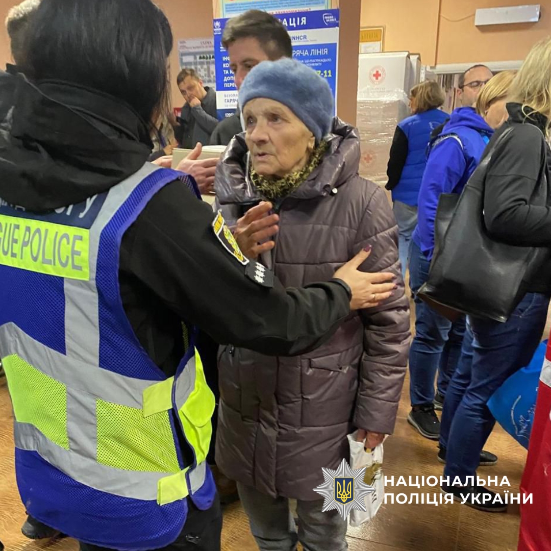 Поліцейські забезпечують правопорядок в пункті евакуації у Харкові