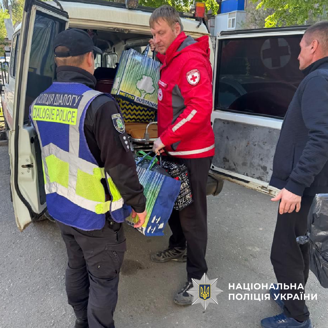 Поліцейські з превентивної комунікації відділу превенції Харківського районного управління поліції № 3 ГУНП в Харківській області допомагають громадянам у пункті евакуації та забезпечують правопорядок.