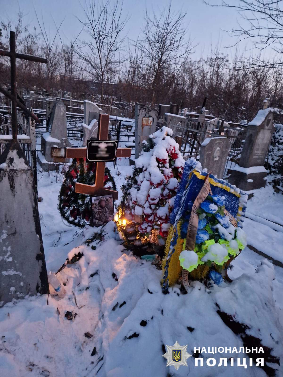 22 січня до відділу поліції № 2 Харківського районного управління № 3 ГУНП в Харківській області надійшло повідомлення про те, що невідомий чоловік викрав прапор з могили загиблого захисника України.