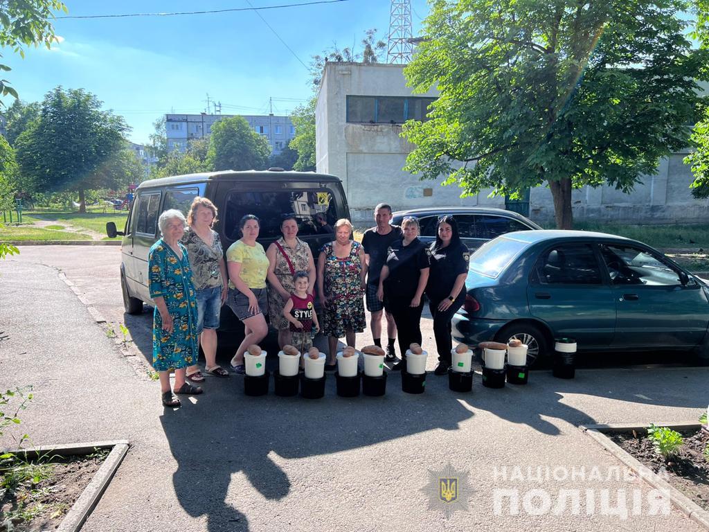 Працівники поліції постійно дбають про безпеку та соціальний захист мешканців міста та області, забезпечують їх продуктами харчування та предметами першої необхідності. Гуманітарну допомогу поліцейські надають найбільш уразливим верствам населення.
