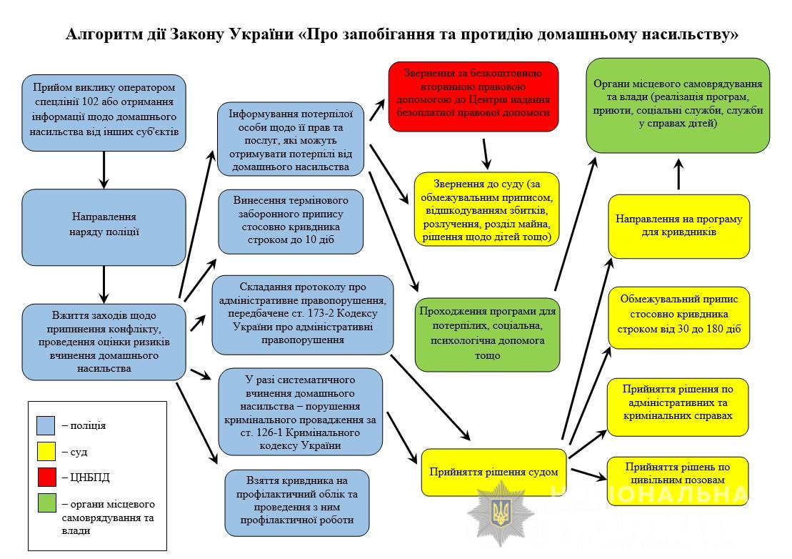 Для правової обізнаності громадян поліція презентує алгоритм дії Закону України «Про запобігання та протидію домашньому насильству».