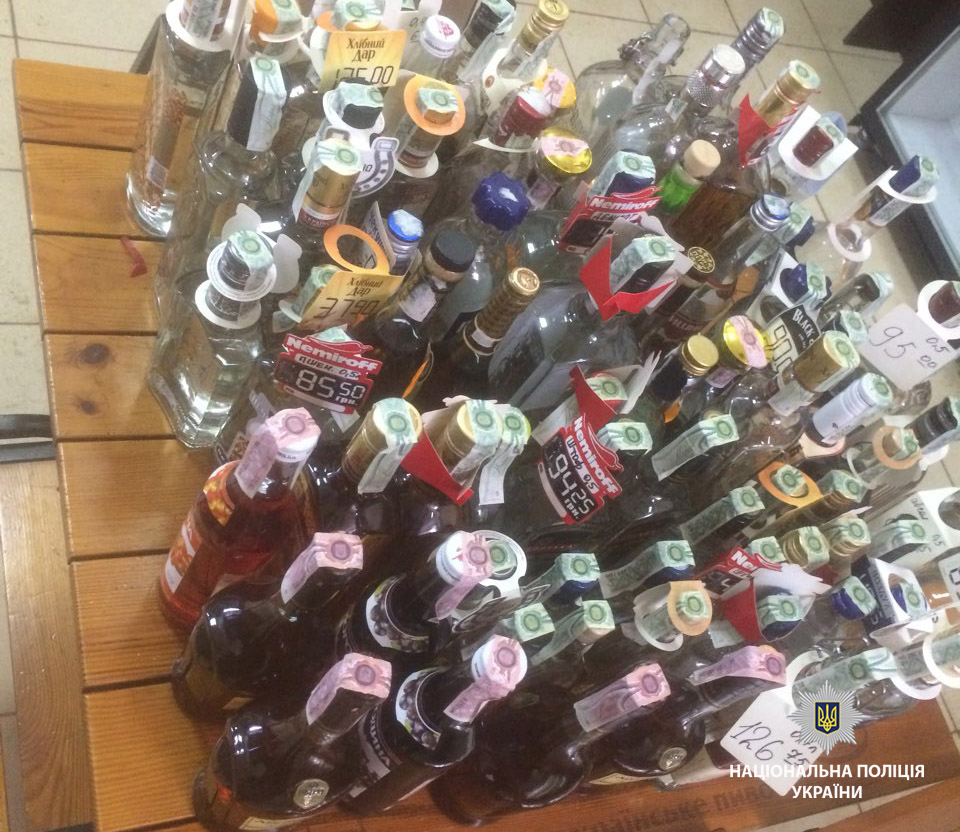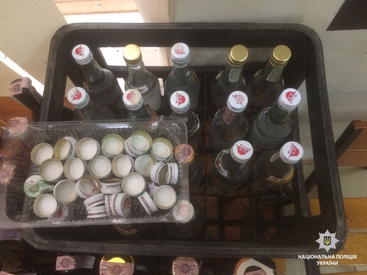 Поліцейські вилучили близько 30 літрів розливних спиртних напоїв та 75 пляшок об’ємом 0,5 літра з приміщення, розташованого на вулиці Велозаводській.