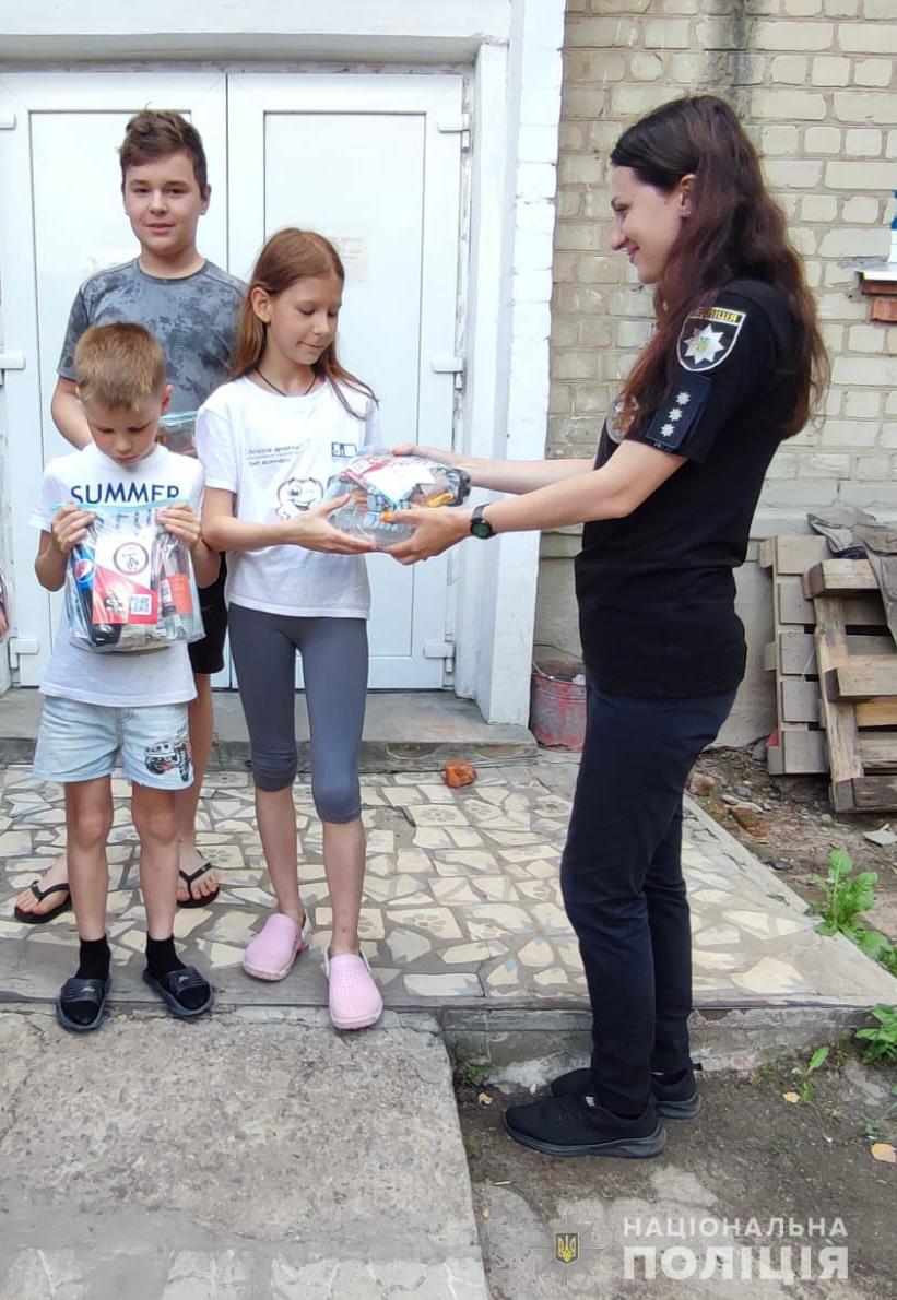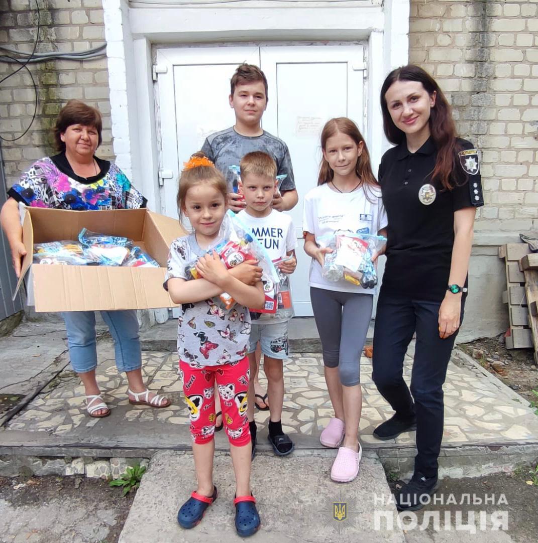 Поліцейські дізналися про потреби сімей та привезли пакунки з продуктами харчування. Слідчі пригостили дітей солодощами.