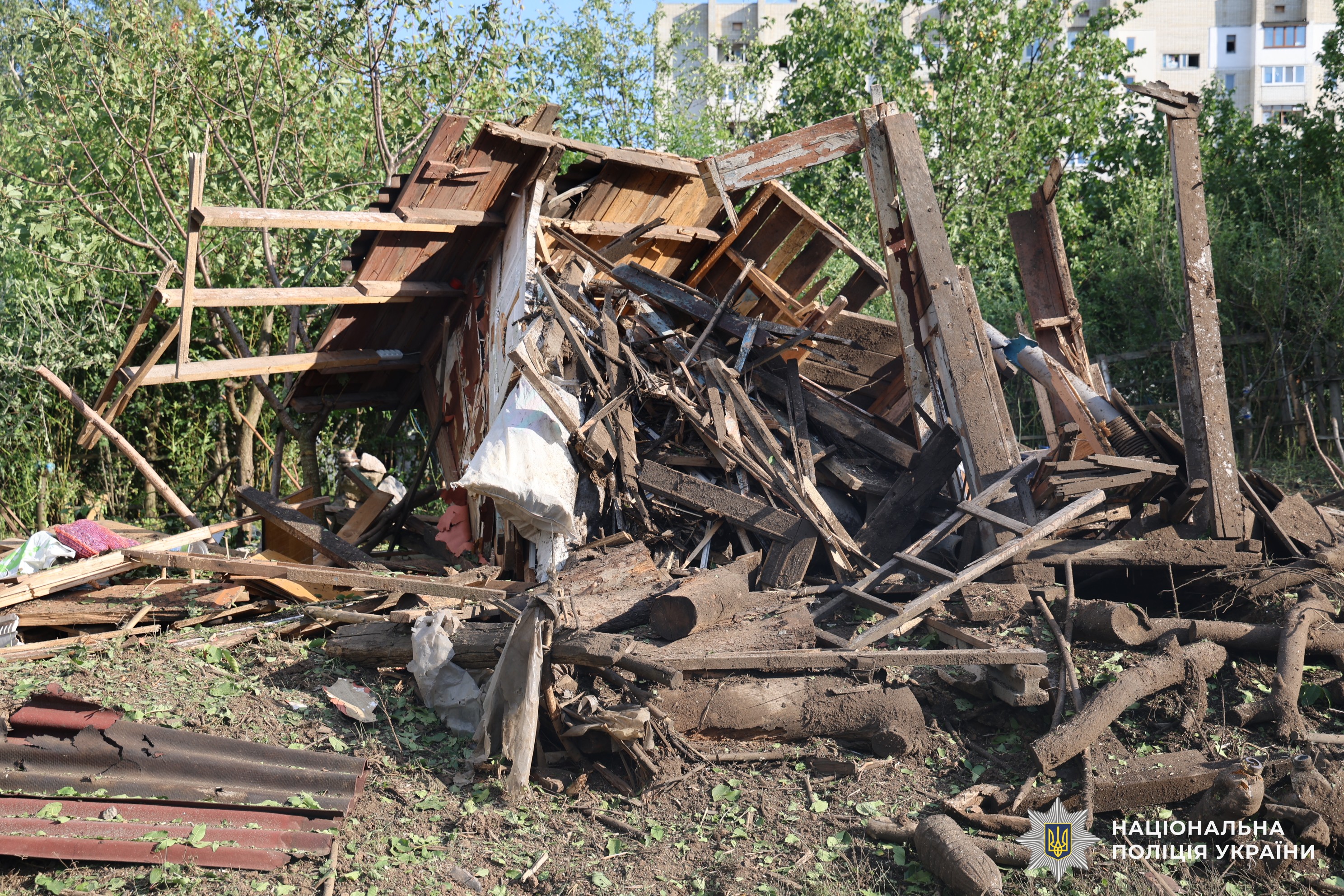 Поліція документує наслідки обстрілів Київського району Харкова, через який постраждали п’ятеро людей