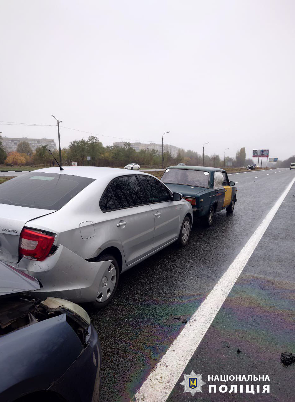 Водій “Mitsubishi Galant” скоїв зіткнення з транспортними засобами “Audi A6”, “Hyundai Sonata”, “Skoda Rapid”, з наступним наїздом на автомобіль “ВАЗ 2106”.