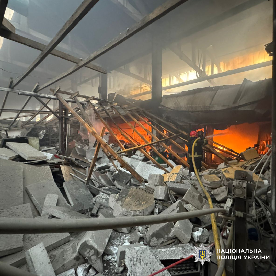 Пошкоджено будівлю одного з підприємств, зайнялася пожежа.