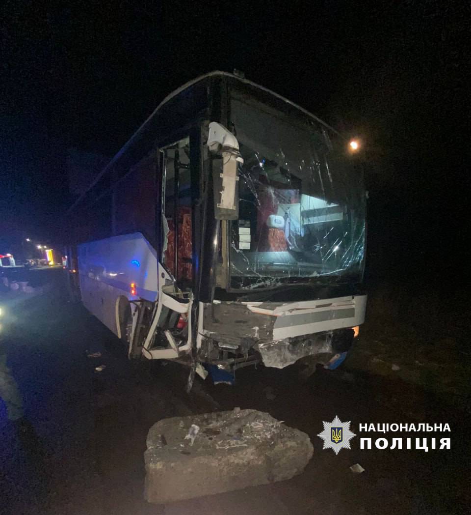 Водій автобуса «Merceds-benz» не впорався з керуванням та зіштовхнувся з бетонними блоками. Зі слів чоловіка, його осліпив фарами зустрічний автомобіль.