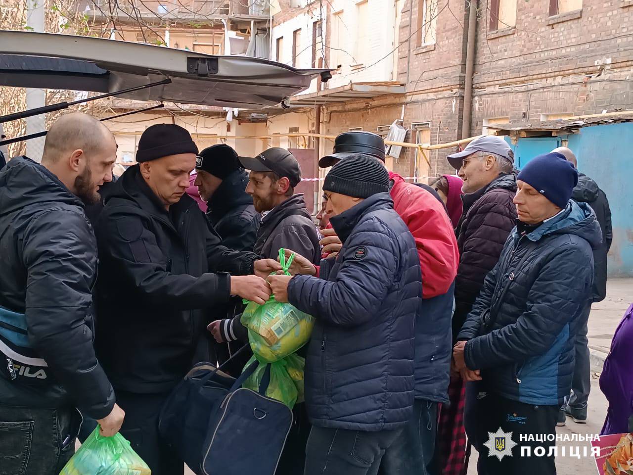 Працівники відділу поліції № 1 ХРУП № 1 ГУНП в Харківській області разом з волонтерською організацією «Я врятований» роздали постраждалим пакунки з харчовими продуктами.
