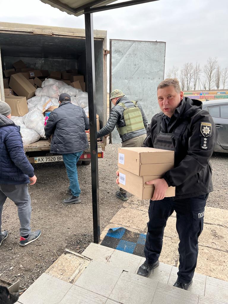 Помічник начальника з гуманітарних питань ГУНП в Харківській області В’ячеслав Марков, волонтер громадської організації «Ukraine ForHeroes» АндрійІльгов та начальник Петропавлівської військової адміністрації Ольга Козирєва доставили до населеного пункту 500 наборів гуманітарної допомоги.