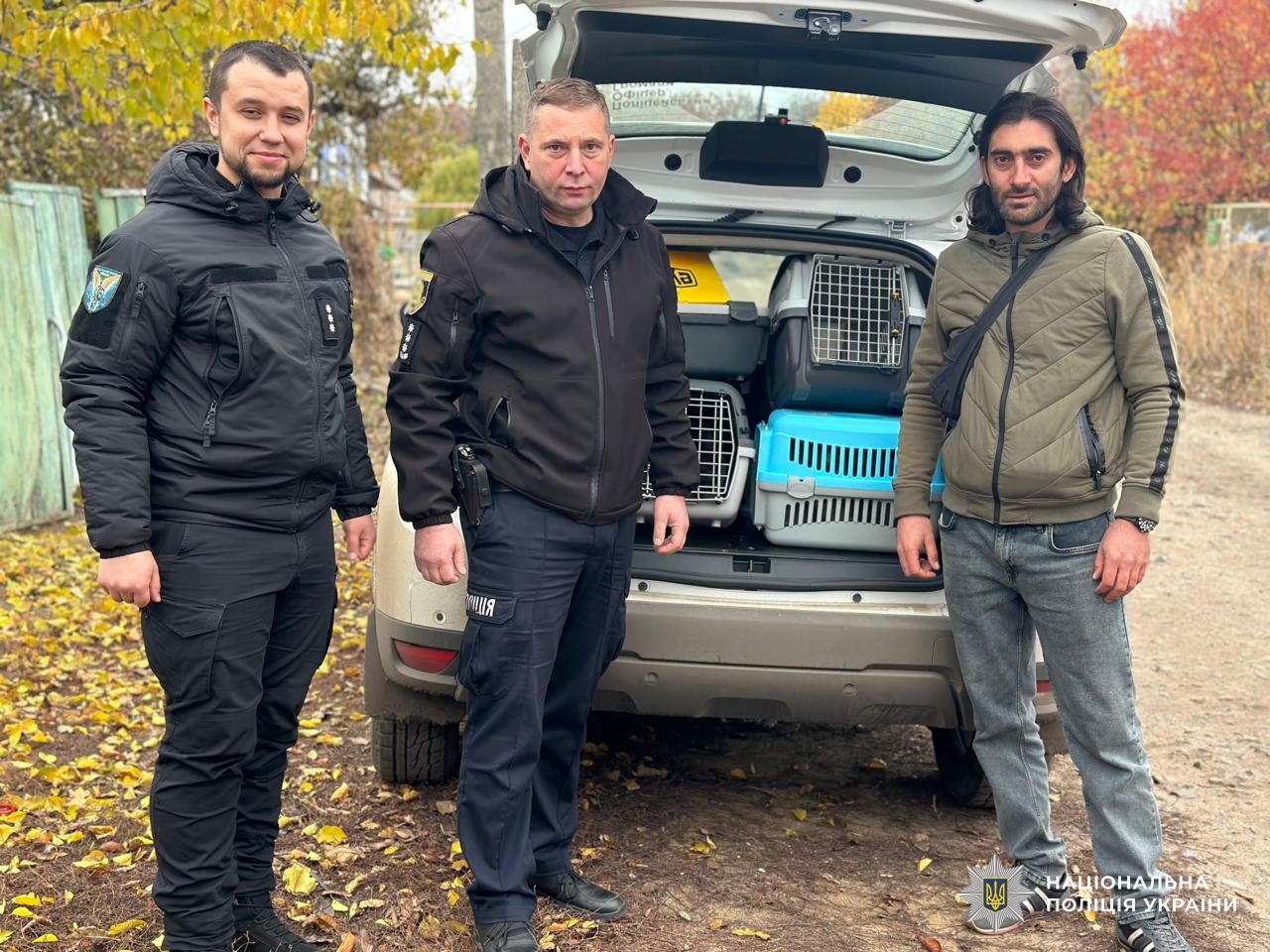 Помічник начальника з гуманітарних питань ГУНП у Харківській області В'ячеслав Марков, поліцейські офіцери громади та зооволонтери «Animals91» на поліцейських автівках вивезли 12 покинутих пухнастиків з небезпечних територій.