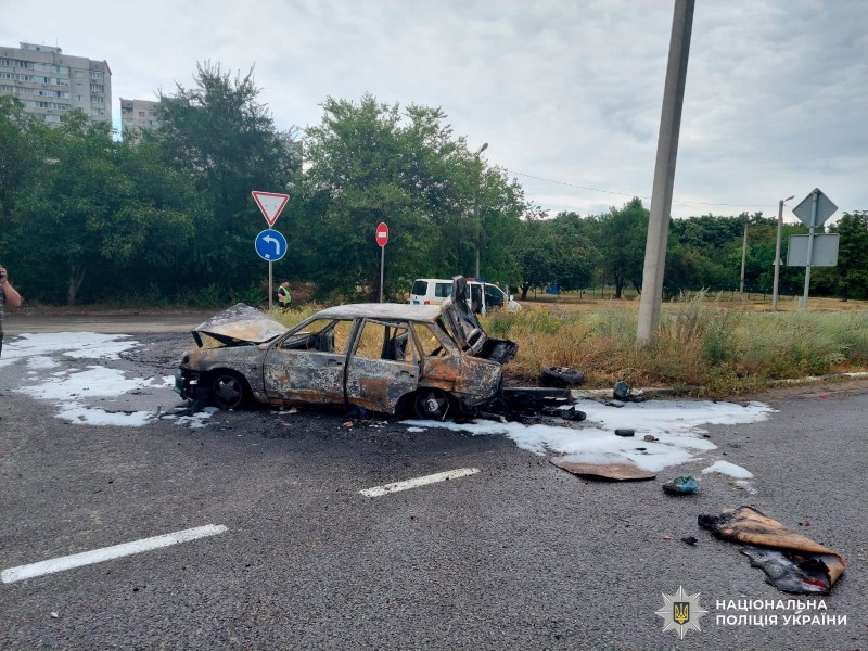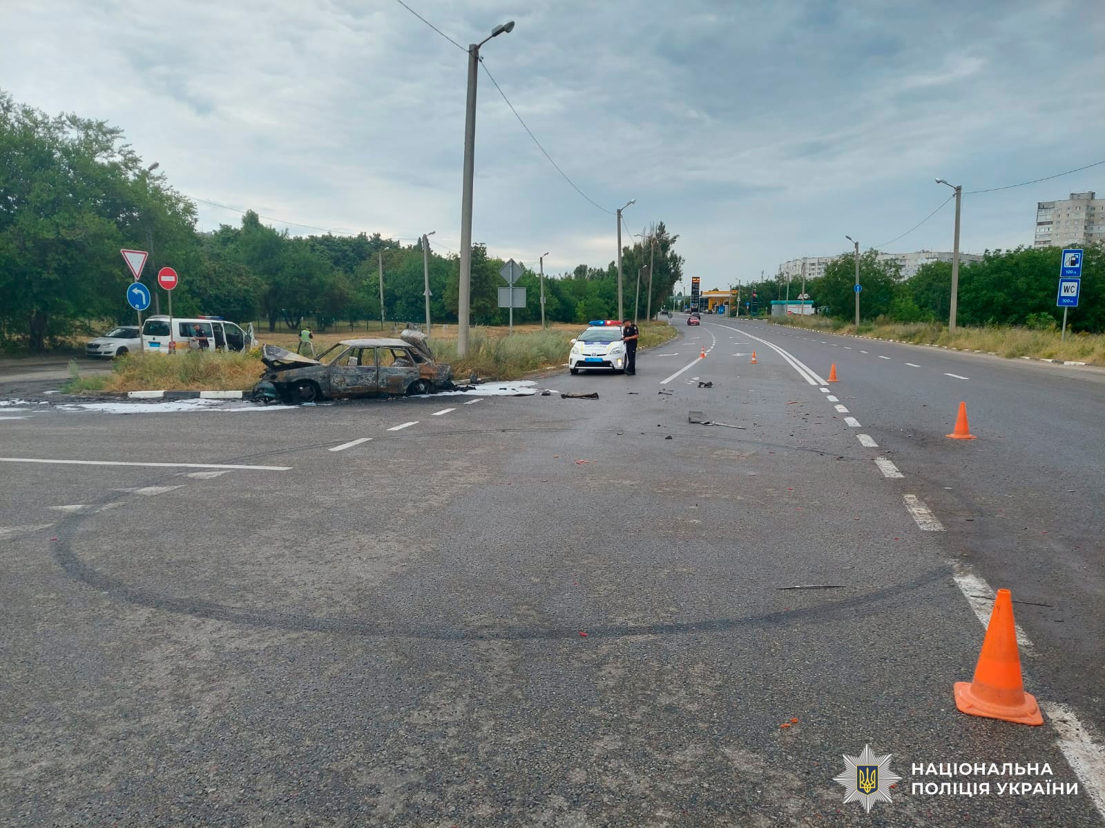 Внаслідок ДТП сталося загоряння автівки «ВАЗ 21150». Незначні тілесні ушкодження дістали двоє пасажирів даного транспортного засобу 37 та 43 років.