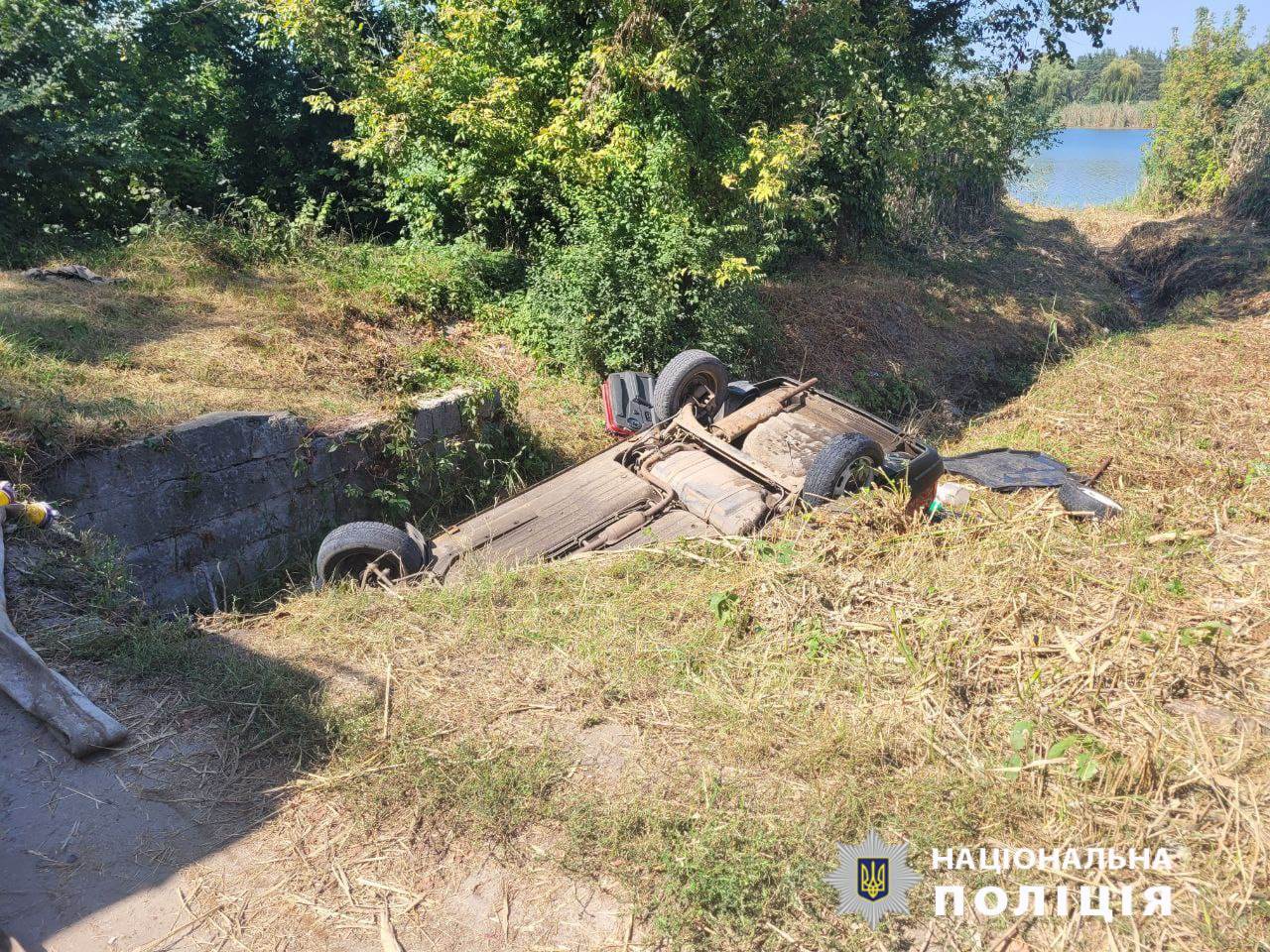 Водій автомобіля “ВАЗ 21099” не впорався з керуванням та з'їхав у дренажний канал.
