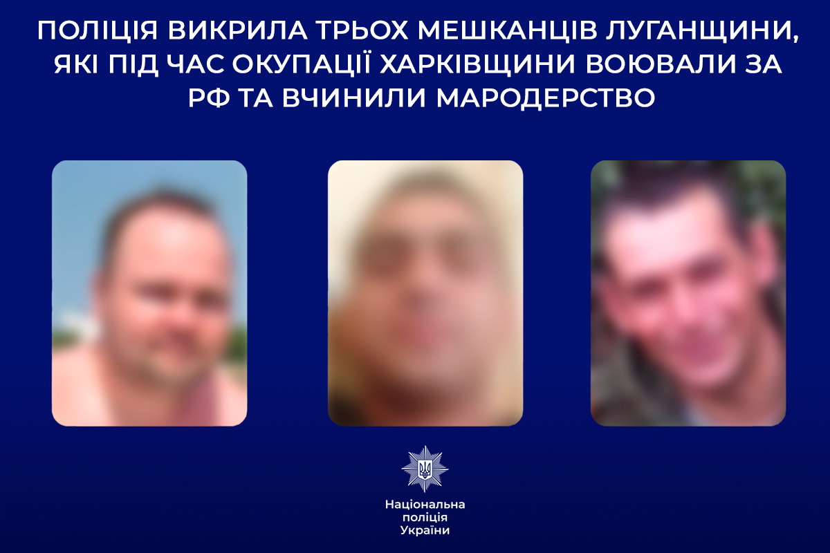 Поліція викрила трьох мешканців Луганщини, які під час окупації Харківщини воювали за рф та вчинили мародерство