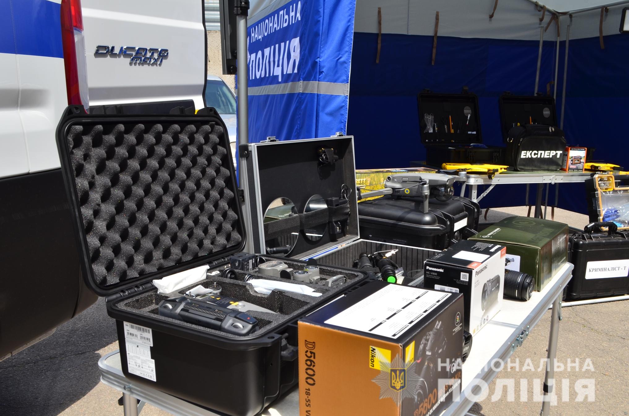 Пересувна криміналістична лабораторія придбана за кошти Національної поліції України. Автомобіль містить уніфіковані криміналістичні валізи, в тому числі балістичні, біологічні та трасологічні. Лабораторія також оснащена захисними наметами для збереження слідової картини, оптичним та освітлювальним обладнанням, а також квадрокоптерами для дистанційної фото- і відеофіксації місцевості, пошуку людей, предметів на великій відстані та у важкодоступних місцях.