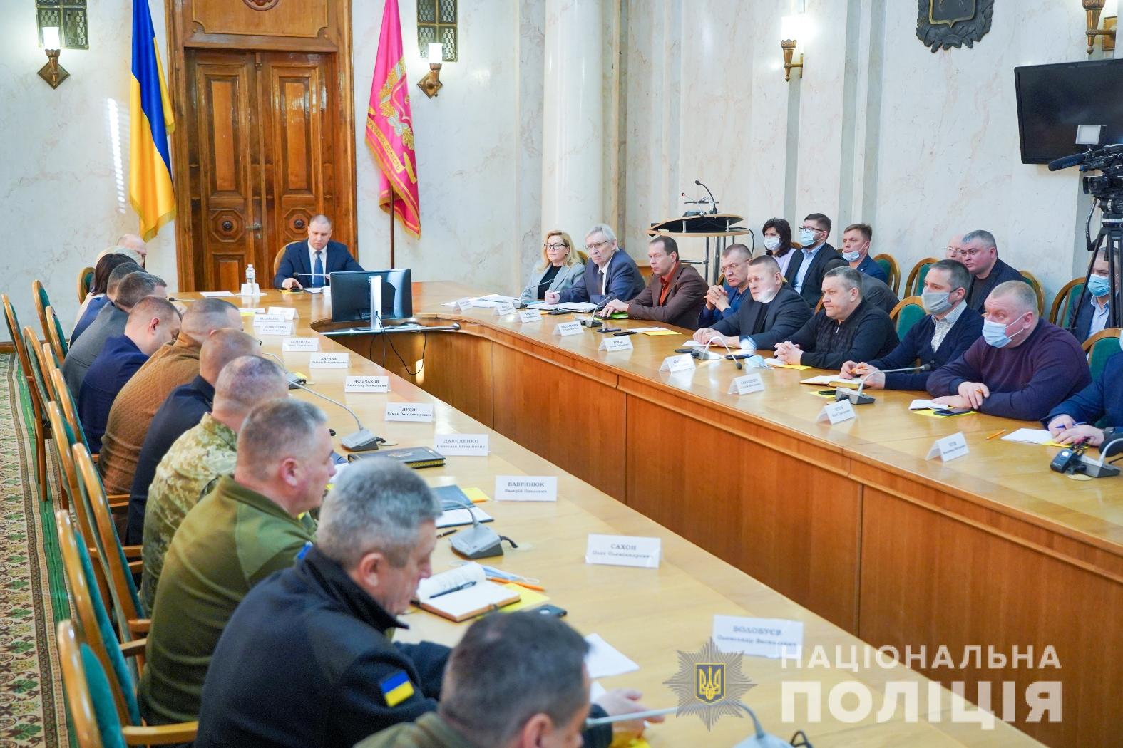 Під час свого виступу Вячеслав Давиденко повідомив, що в області налагоджена система охорони об’єктів інфраструктури, релігійних споруд, важливих адміністративних будівель органів обласної та міської влади, правоохоронних структур, консульств та інших представництв іноземних держав з метою попередження провокацій.
