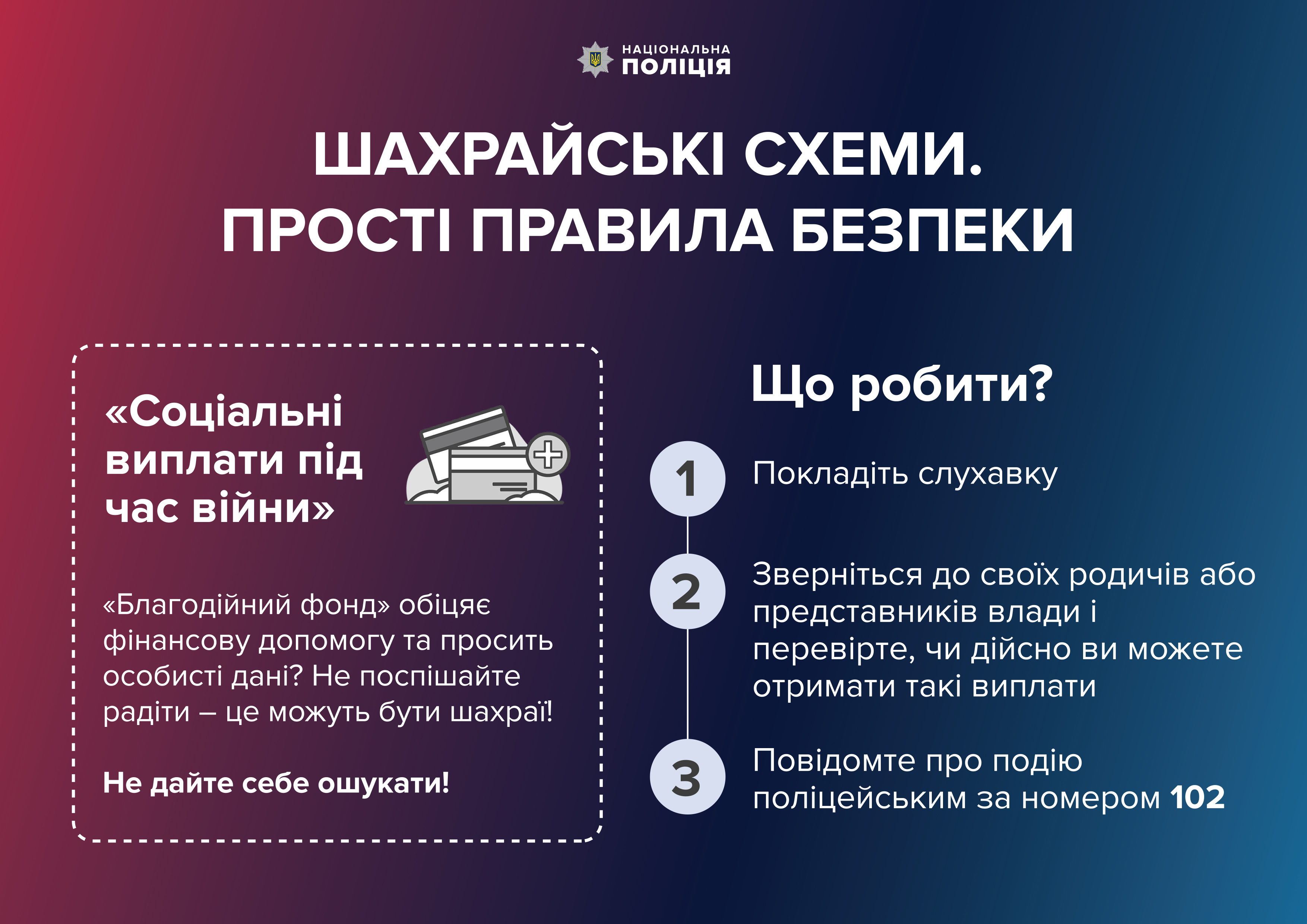 Не дайте ошукати себе! Повідомте про подію до поліції за номером 102.