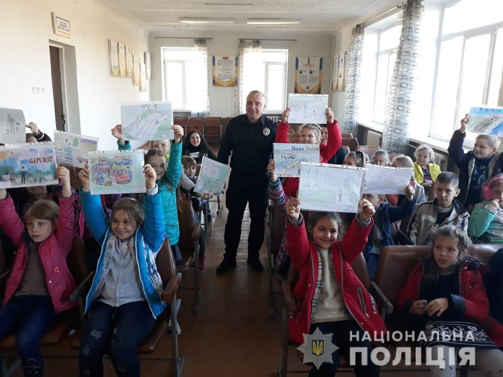 Наприкінці екскурсії класний керівник Вікторія Сенна подякувала за цікаву зустріч і подарувала на згадку малюнки, які діти намалювали спеціально для поліцейських.
