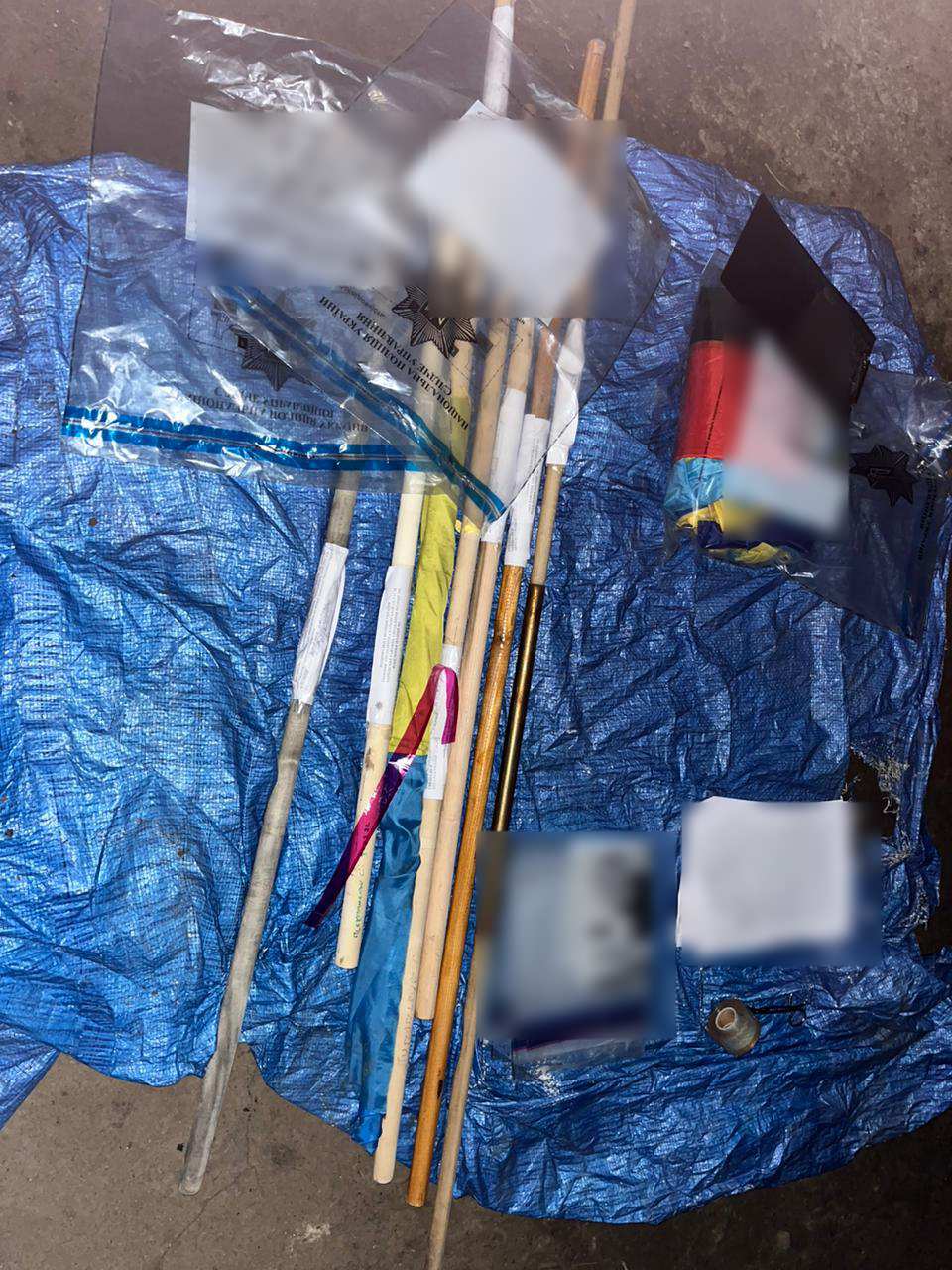 Поліцейські вилучили за місцем мешкання зловмисника речові докази - державні прапори України та флагштоки.