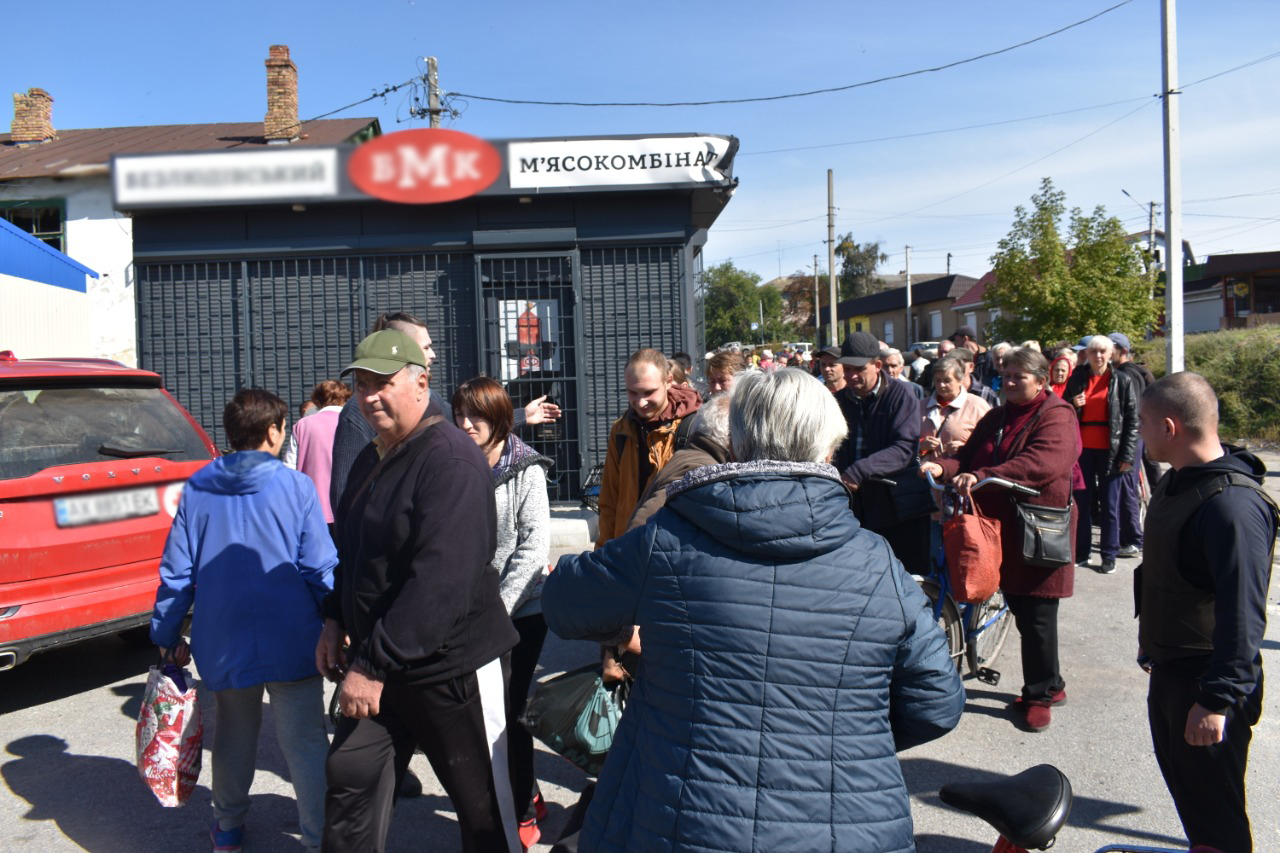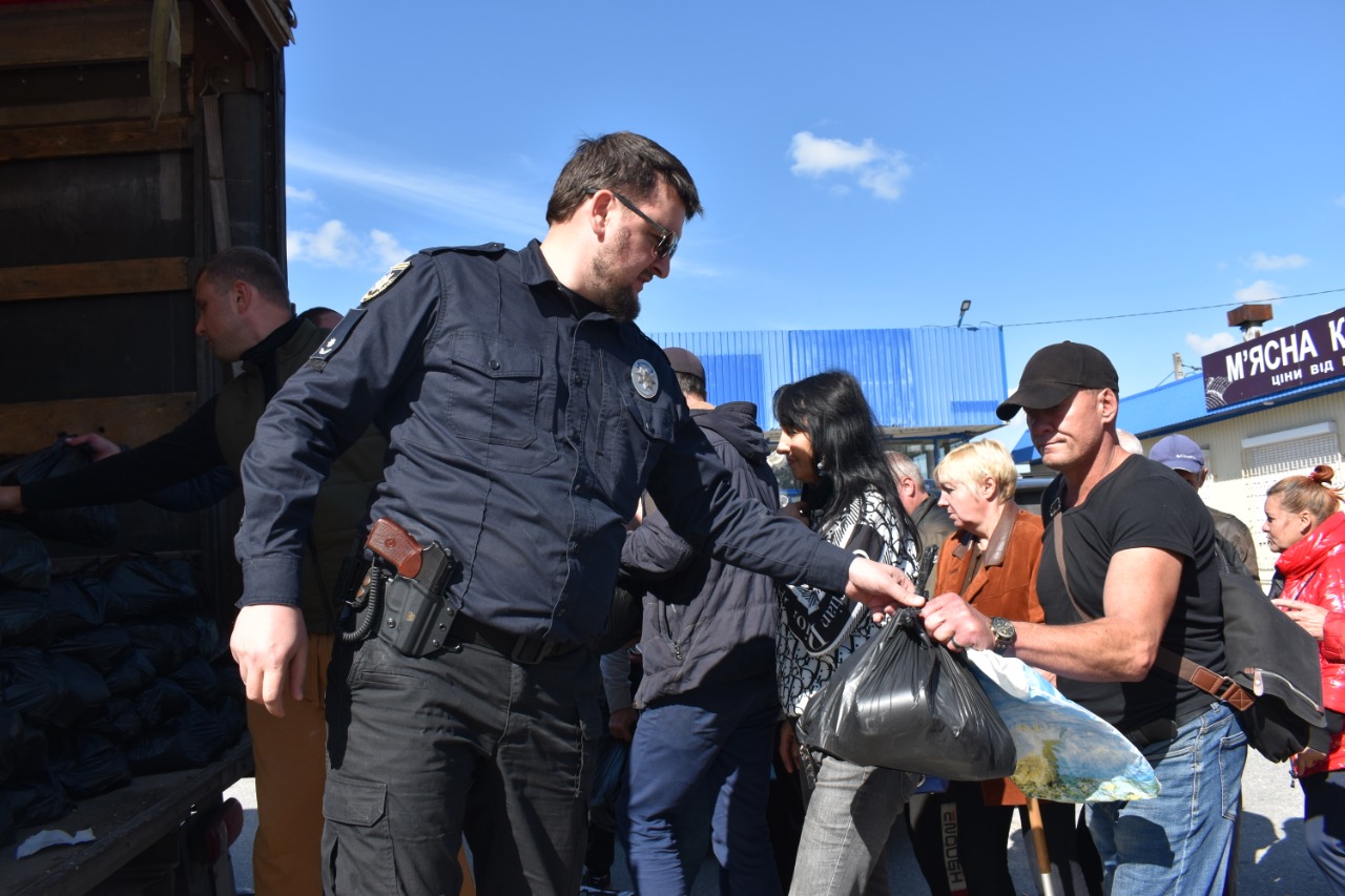 Продукти харчування тривалого зберігання та парафінові свічки поліцейські та волонтери роздали місцевим мешканцям.