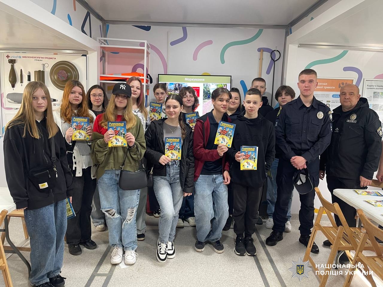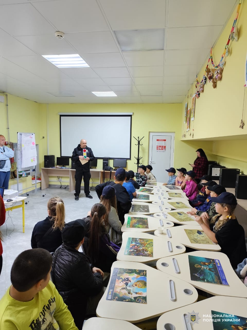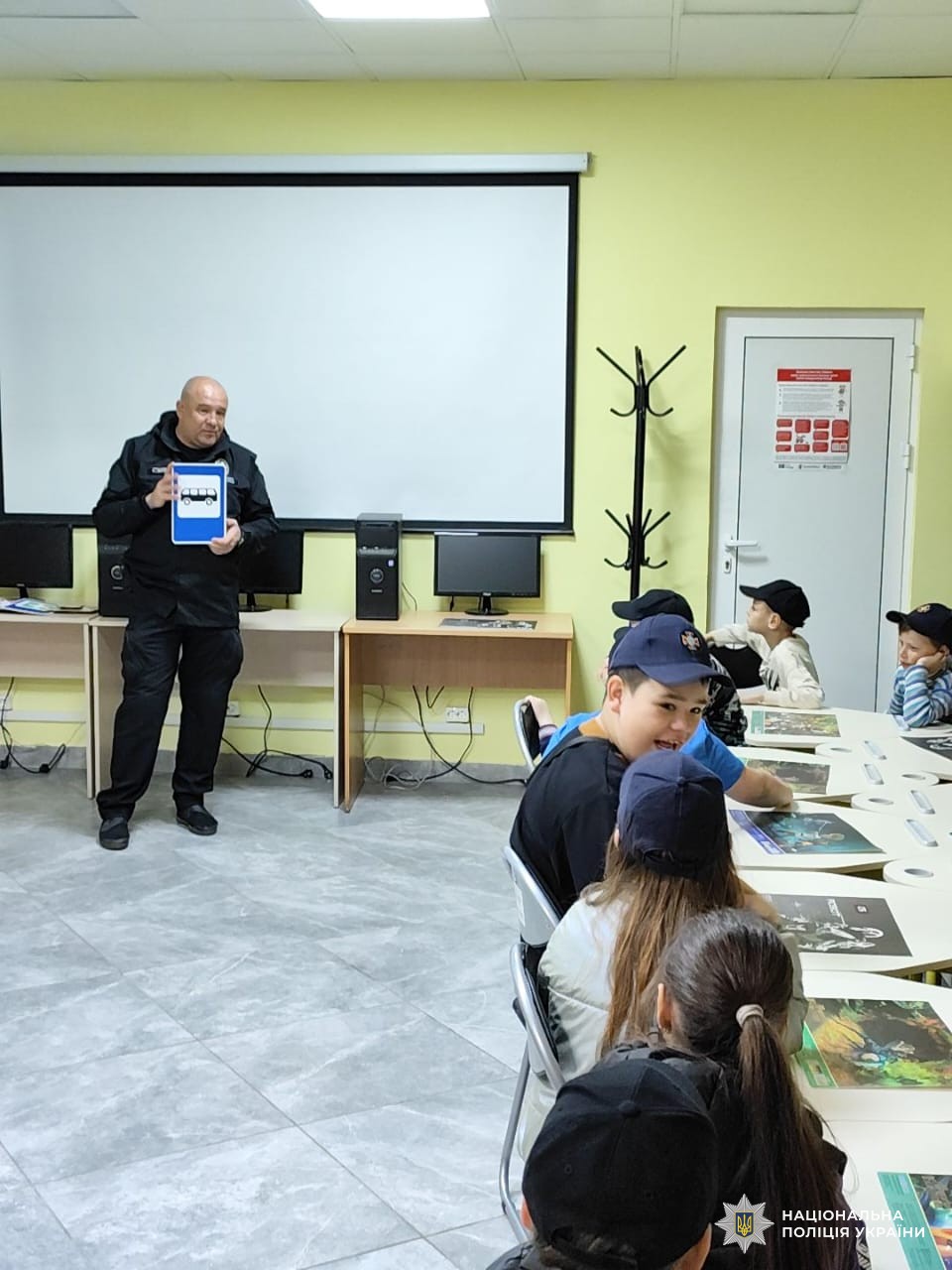 Правоохоронці нагадали дітям про важливість дотримання основних правил безпеки дорожнього руху, алгоритм дій при поданні сигналів повітряної тривоги та надзвичайних ситуацій. Також розказали про основи надання домедичної допомоги.