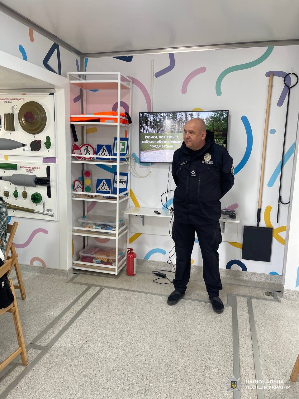 В рамках проєкту «Мобільний клас безпеки» поліцейські та рятувальники продовжують навчати дітей правилам пожежної та мінної безпеки.