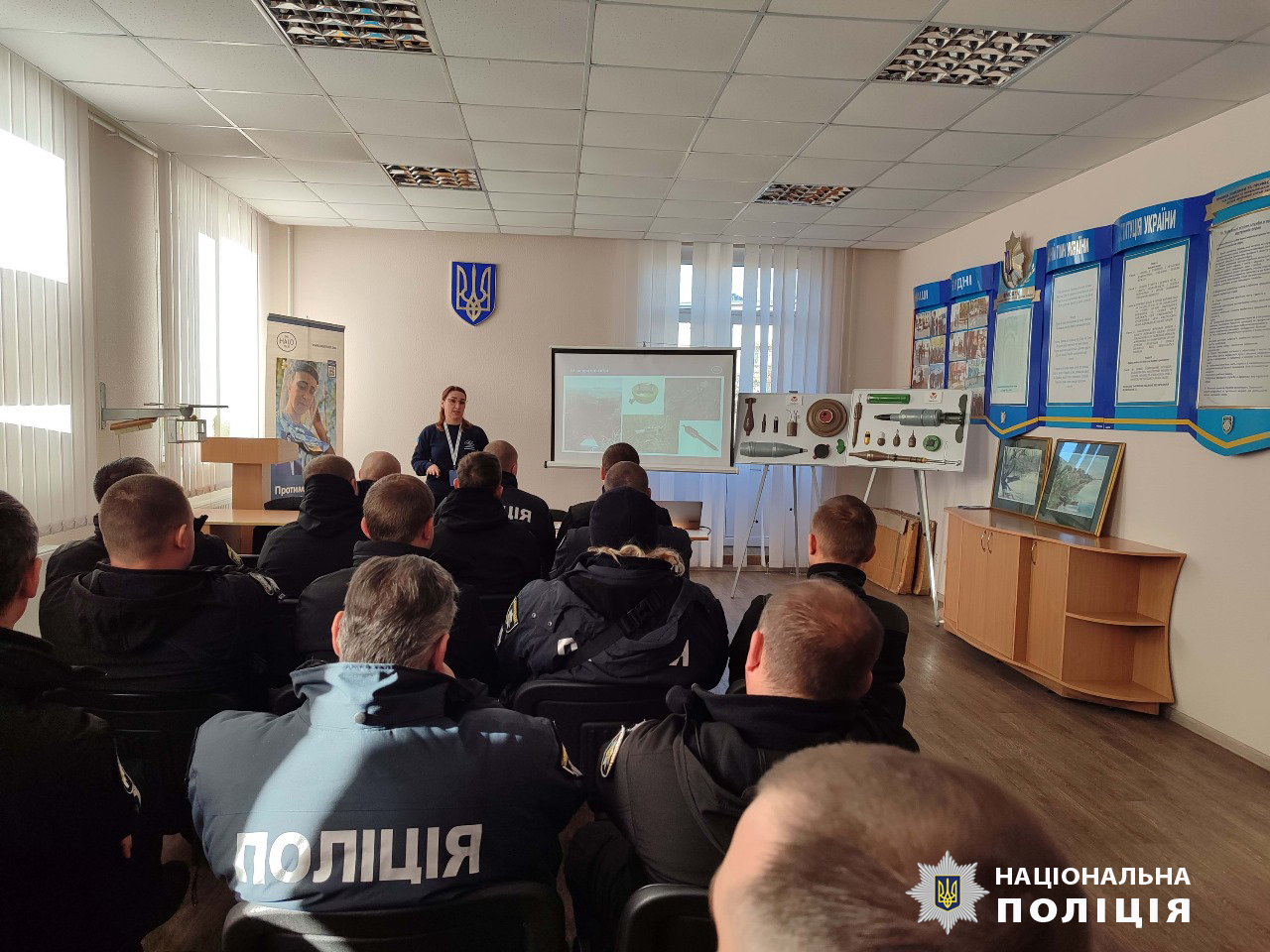За допомогою презентаційного матеріалу правоохоронці отримали додаткові знання про правила поводження з вибухонебезпечними предметами.