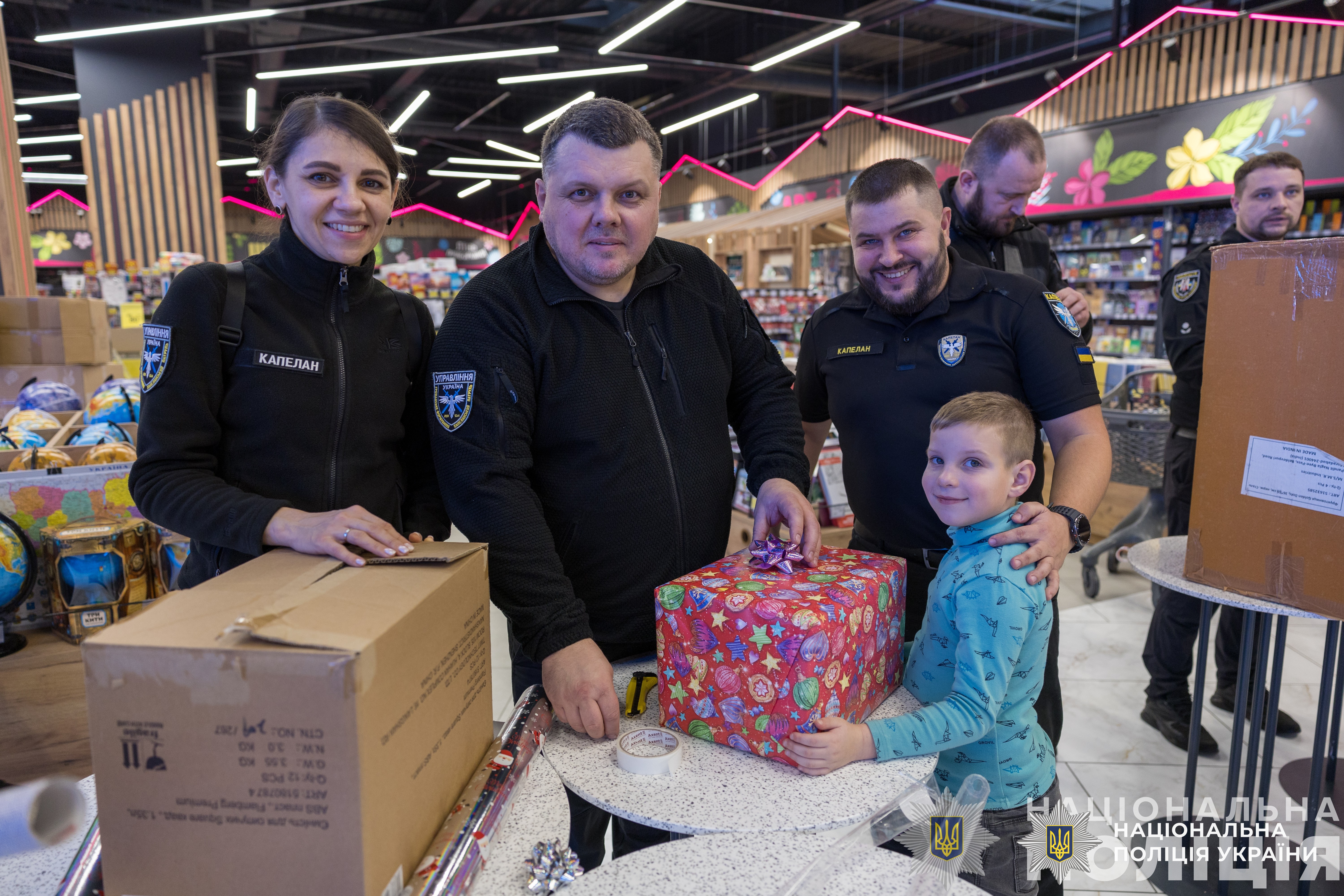 Уже четвертий рік поспіль Національна поліція України за ініціативою громадської організації «Капеланський патруль» проводить захід для дітей, які потребують особливої підтримки. Цьогоріч діти поліцейських, які загинули, зникли безвісти або знаходяться у полоні, мали змогу особисто вибрати подарунки для себе та рідних під новорічну ялинку.