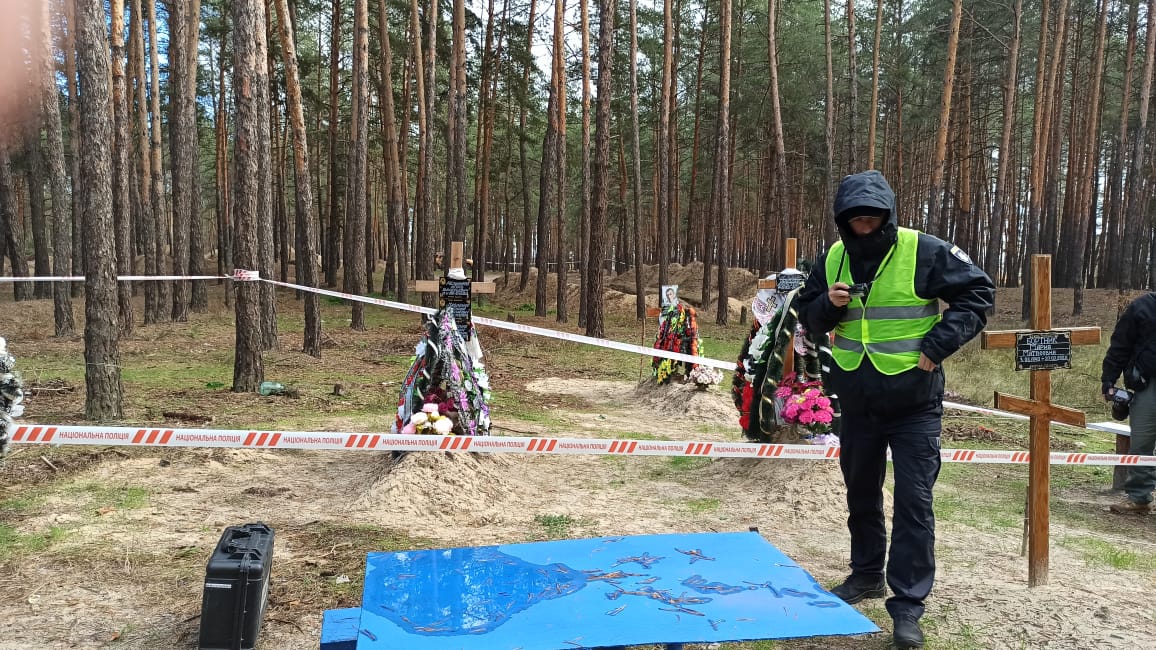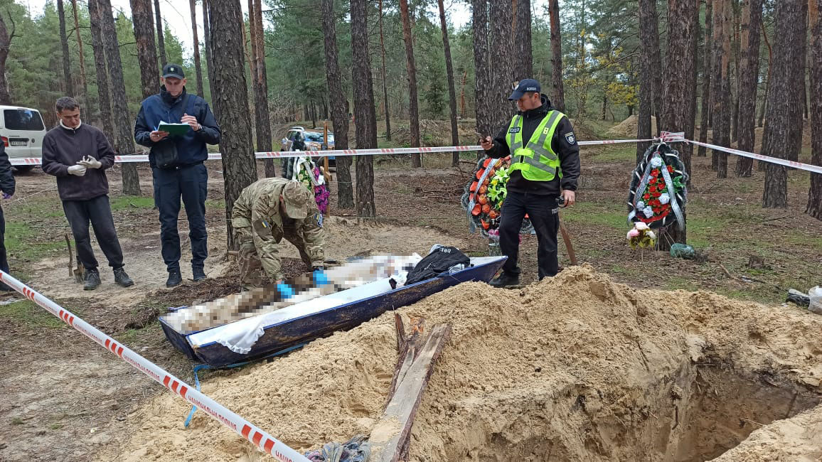 Сьогодні на кладовищі в місті Ізюмі поліцейські зведеного загону вилучили рештки загиблих. Наймолодшому 24 лютого – у день повномасштабного вторгнення росії в Україну - виповнилося 20 років. Його батькові – 46, їх знайомому – 56.