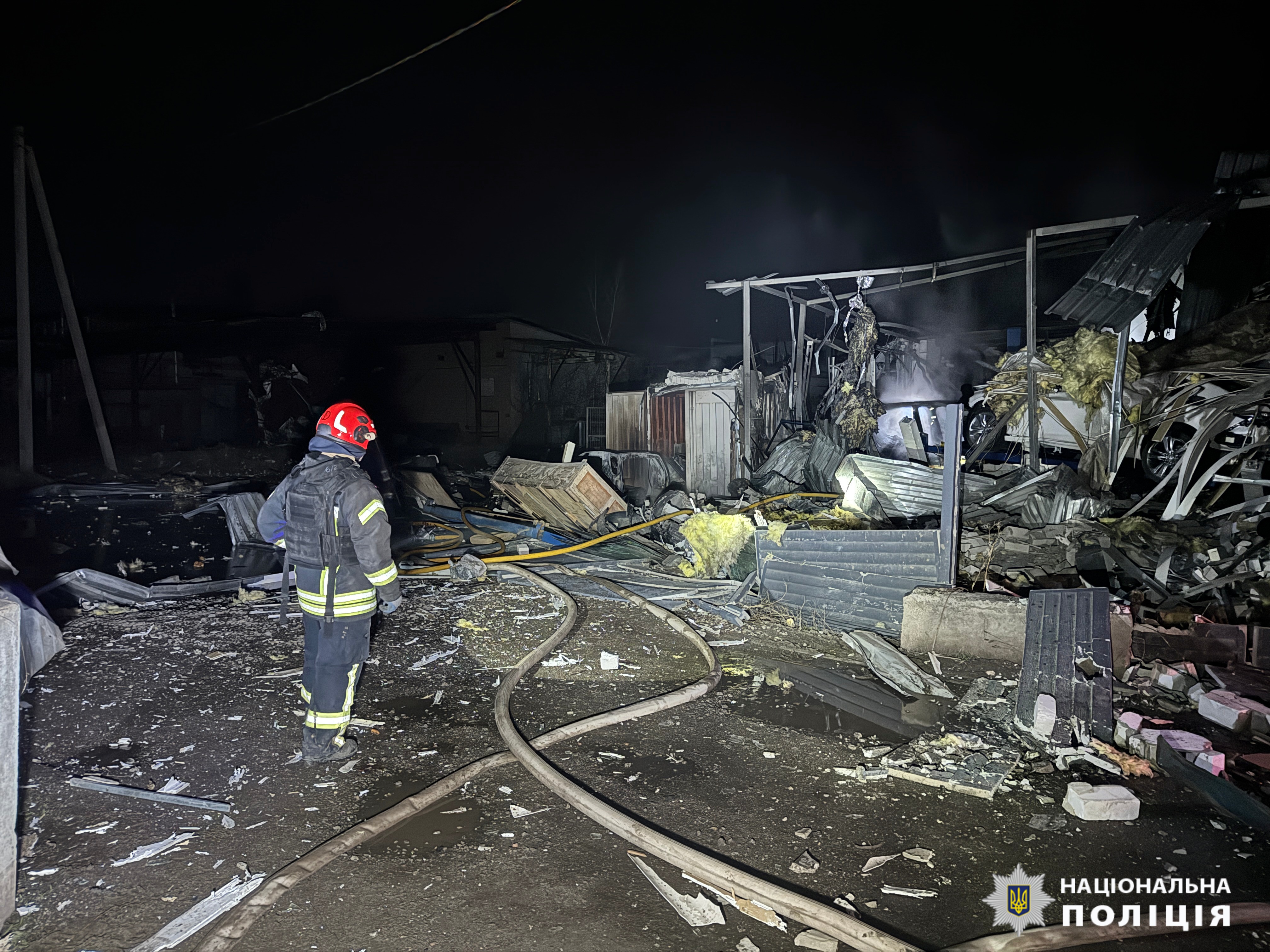 У Основ’янському районі Харкова через обстріли БпЛА «Шахед» пошкоджені будівлі та виробниче обладнання. Зруйновано СТО. Сталися пожежі. Вогнем пошкоджені близько 20 вантажних та легкових автомобілів. Постраждали три людини.