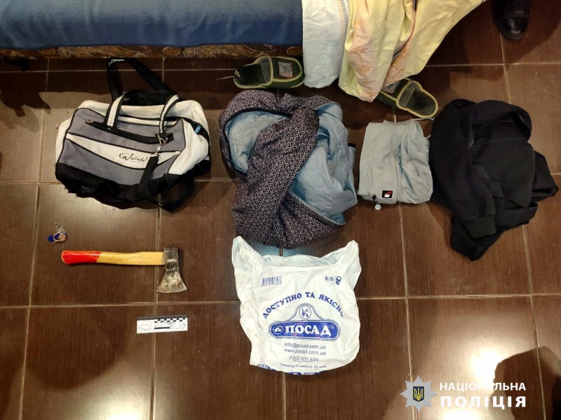 За місцем проживання нападника правоохоронці вилучили сокиру, одяг та ключі від квартири потерпілої.