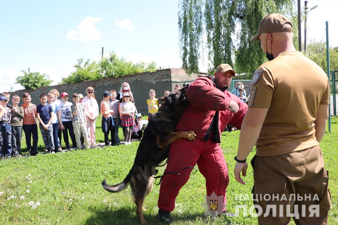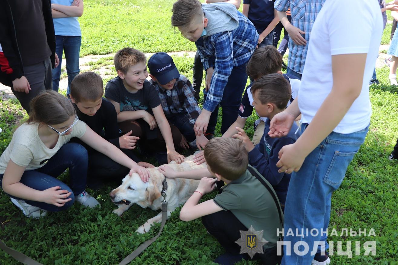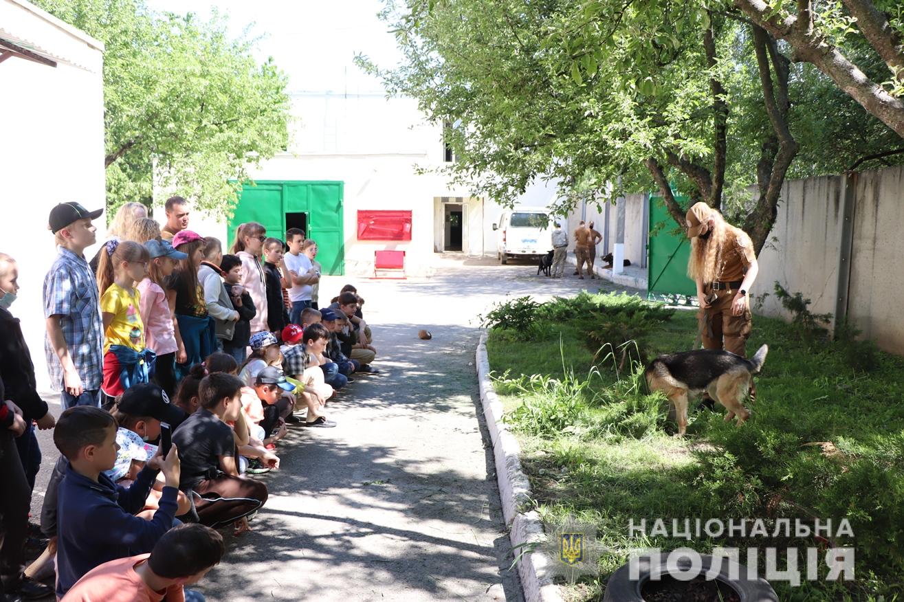 Діти з захопленням споглядали за тим, як службові собаки шукали та знаходили заборонені предмети. Школярі оглянули домівку чотирилапих напарників кінологів. Але найбільше враження на дітей справило те, як собаки швидко та вправно долають смугу перешкод, затримують умовного правопорушника.