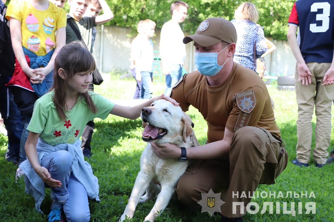 Наприкінці зустрічі діти поспілкувалися з лабрадором Кейсою та німецькою вівчаркою Коброю, пограли з ними, пригостили смаколиками і сфотографувалися на пам'ять.