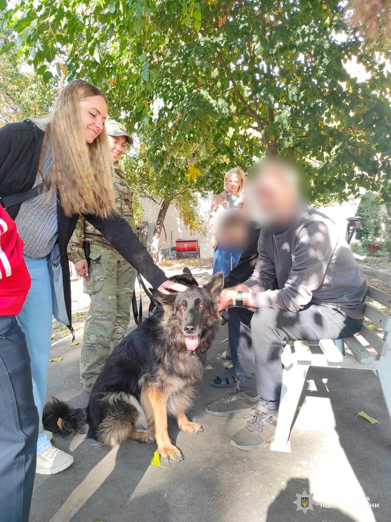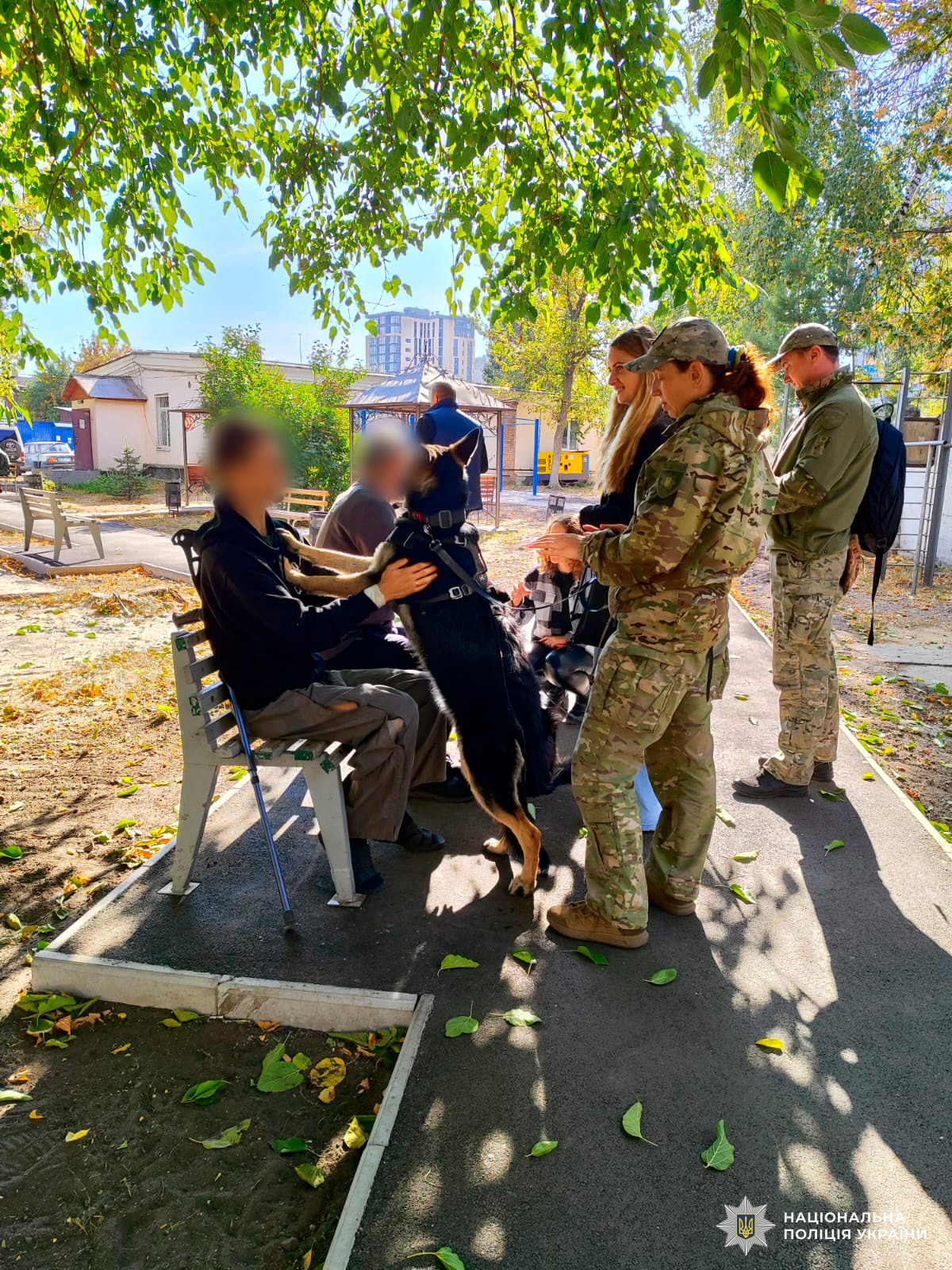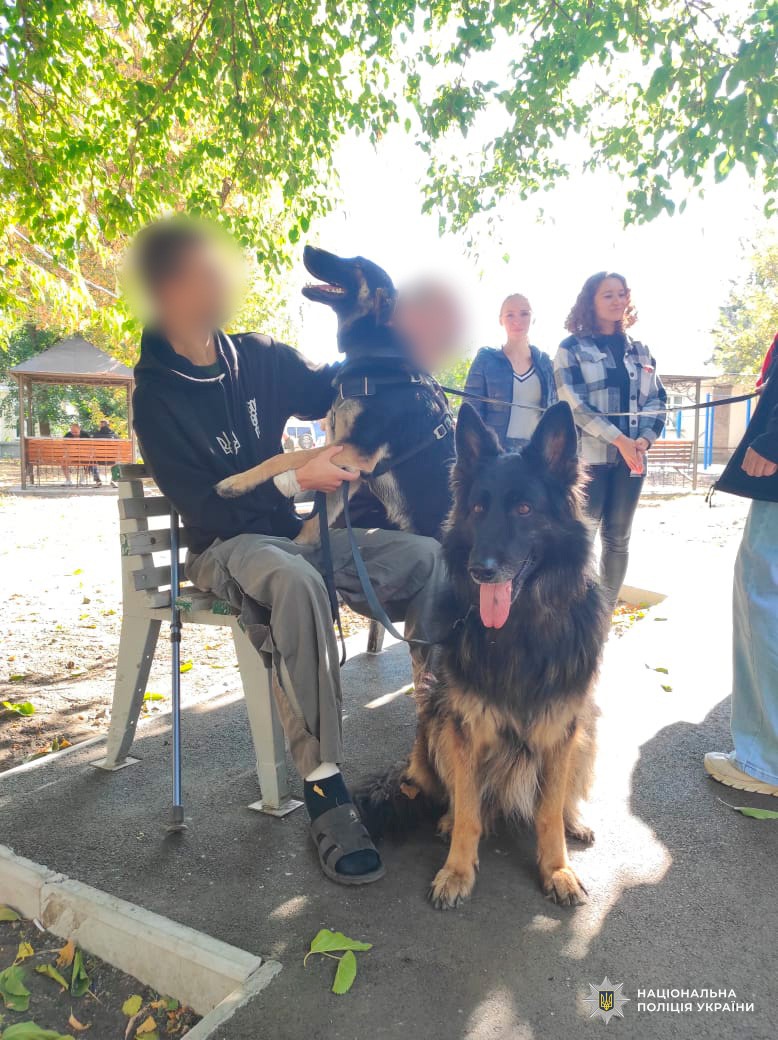 До поранених правоохоронців завітали психологи поліції разом з молодшим інспектором-кінологом кінологічного центру ГУНП в Харківській області та чотирилапими помічниками Азою й Рікою.
