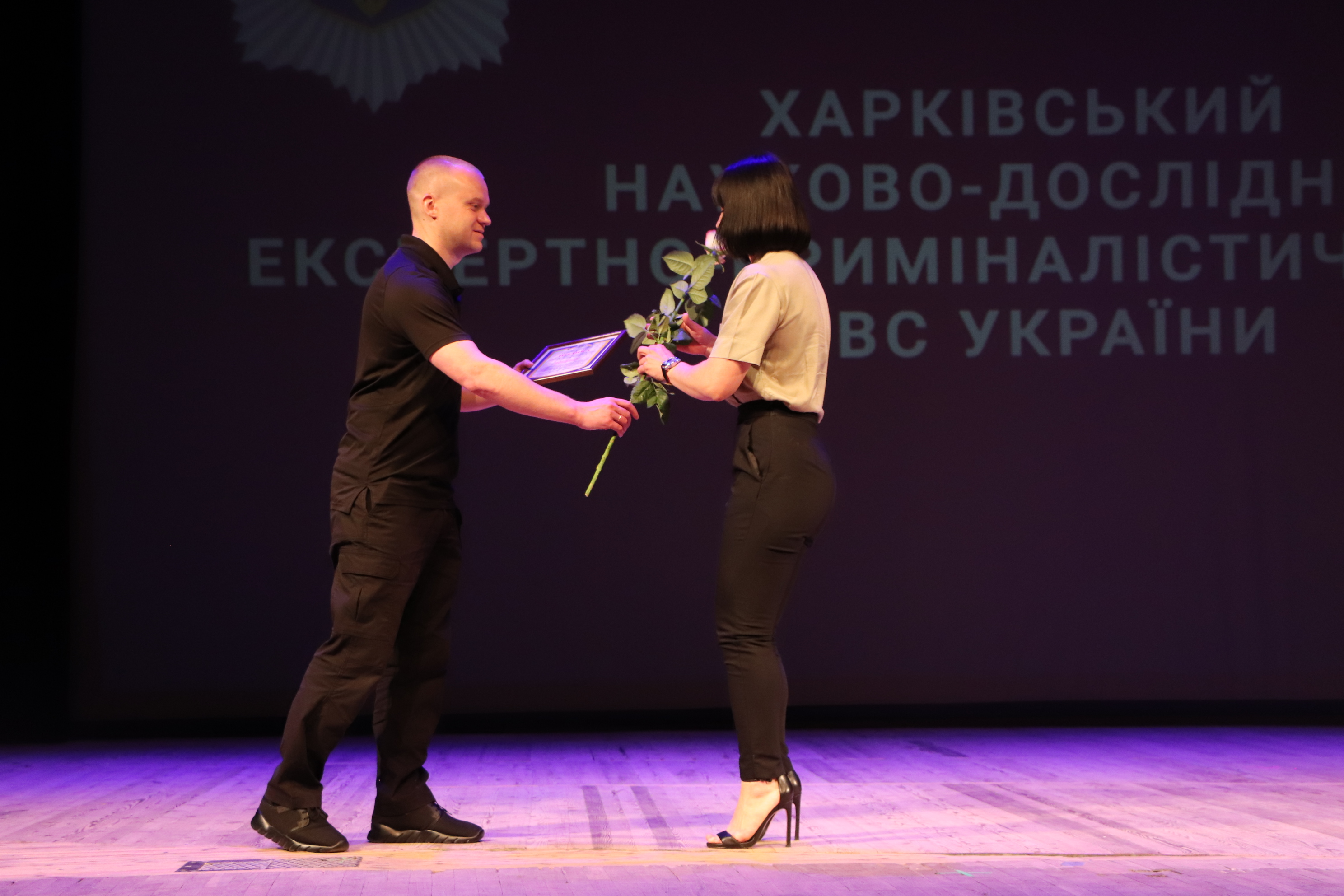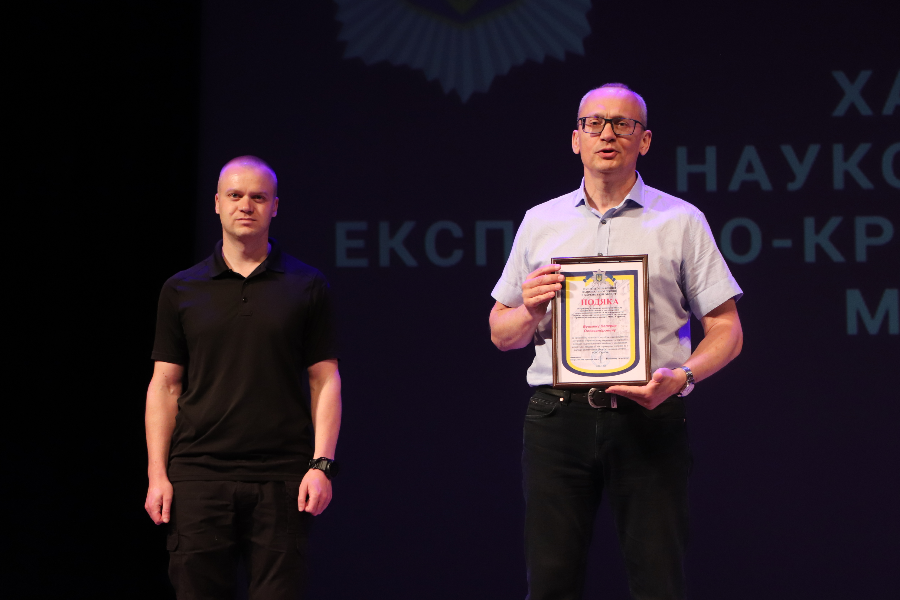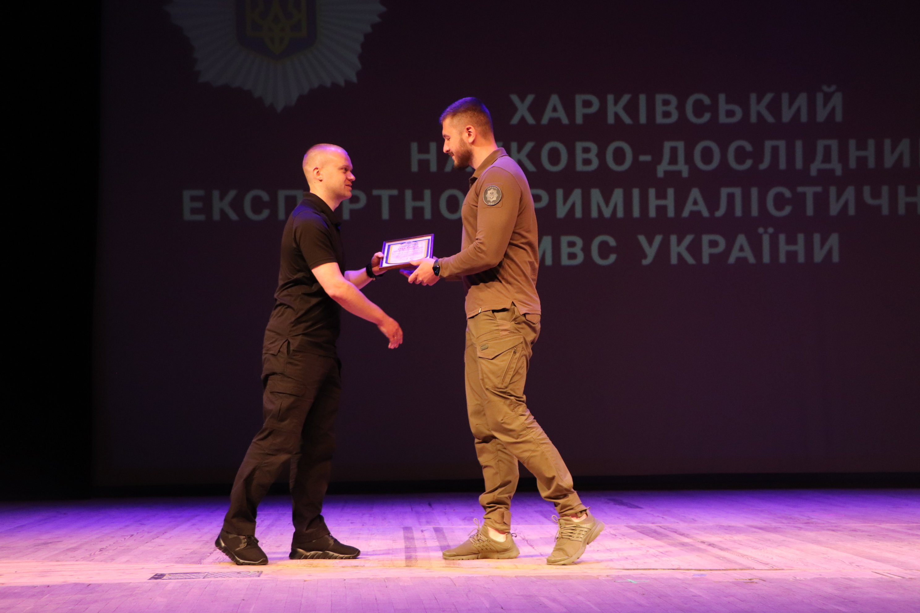 Заступник начальника поліцейського главку В’ячеслав Давиденко вручив працівникам експертних служб відомчі грамоти і подяки.