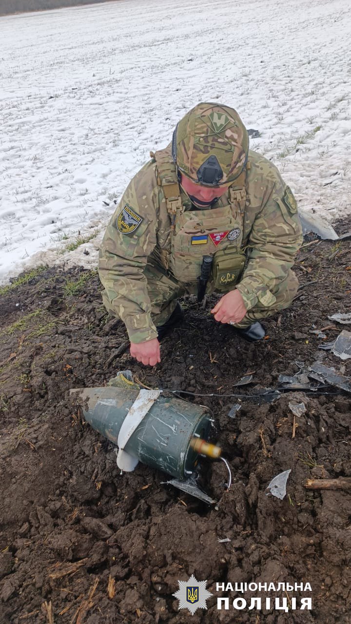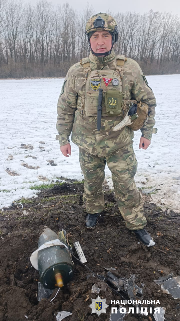 За словами старшого інспектора відділу забезпечення вибухобезпеки управління вибухотехнічної служби ГУНП в Харківській області Євгенія Крячка, на місці виявлено бойову частину безпілотника, яка знаходиться у конструктивному поєднанні з підривачем. Тому відноситься до першої категорії вибухонебезпечних предметів.