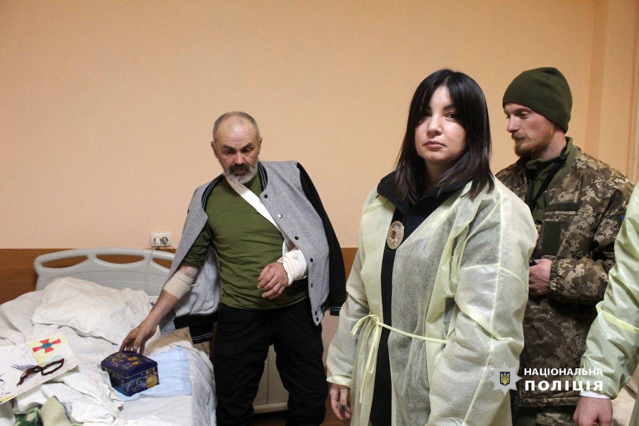 - Дякуємо Вам за стійкість і силу духу, за мужність та самопожертву заради миру і щасливого життя майбутніх поколінь, - звернувся до героїв керівник місцевої поліції охорони Артем Фоменко. Він подарував захисникам освячені обереги, малюнки дітей співробітників поліції та побажав якнайшвидшого одужання.