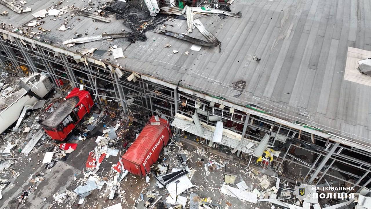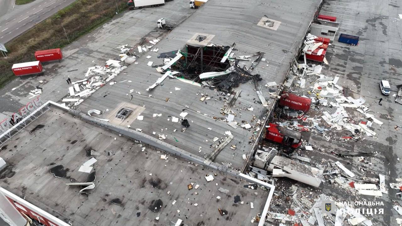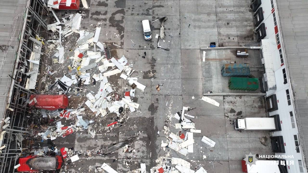 Так виглядає термінал Нової пошти після обстрілу.
