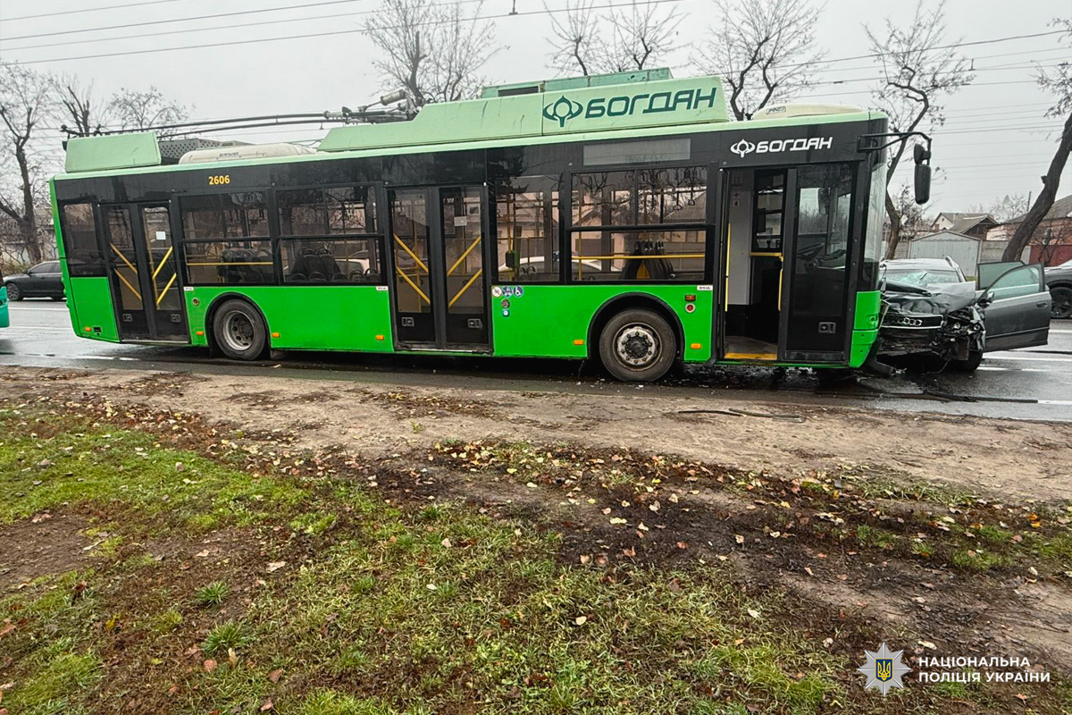 Внаслідок лобового зіткнення легкового автомобіля Audi та тролейбуса постраждали троє людей: 30-річний водій та пасажири легковика - чоловіки 27 та 31 років. Вони отримали численні тілесні ушкодження. Постраждалих госпіталізували до медичного закладу.