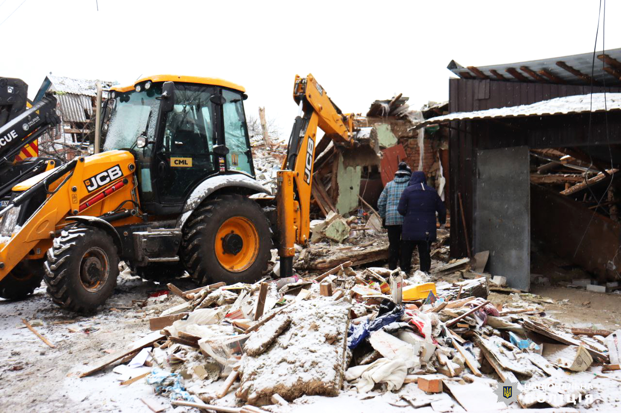 Також повністю був зруйнований сусідній будинок. 62-річна жінка отримала гостру реакцію на стрес. Під завалами опинилися 63-річний чоловік та 63-річна жінка. Чоловік отримав поранення. Жінку дістали з-під завалів без ознак життя.