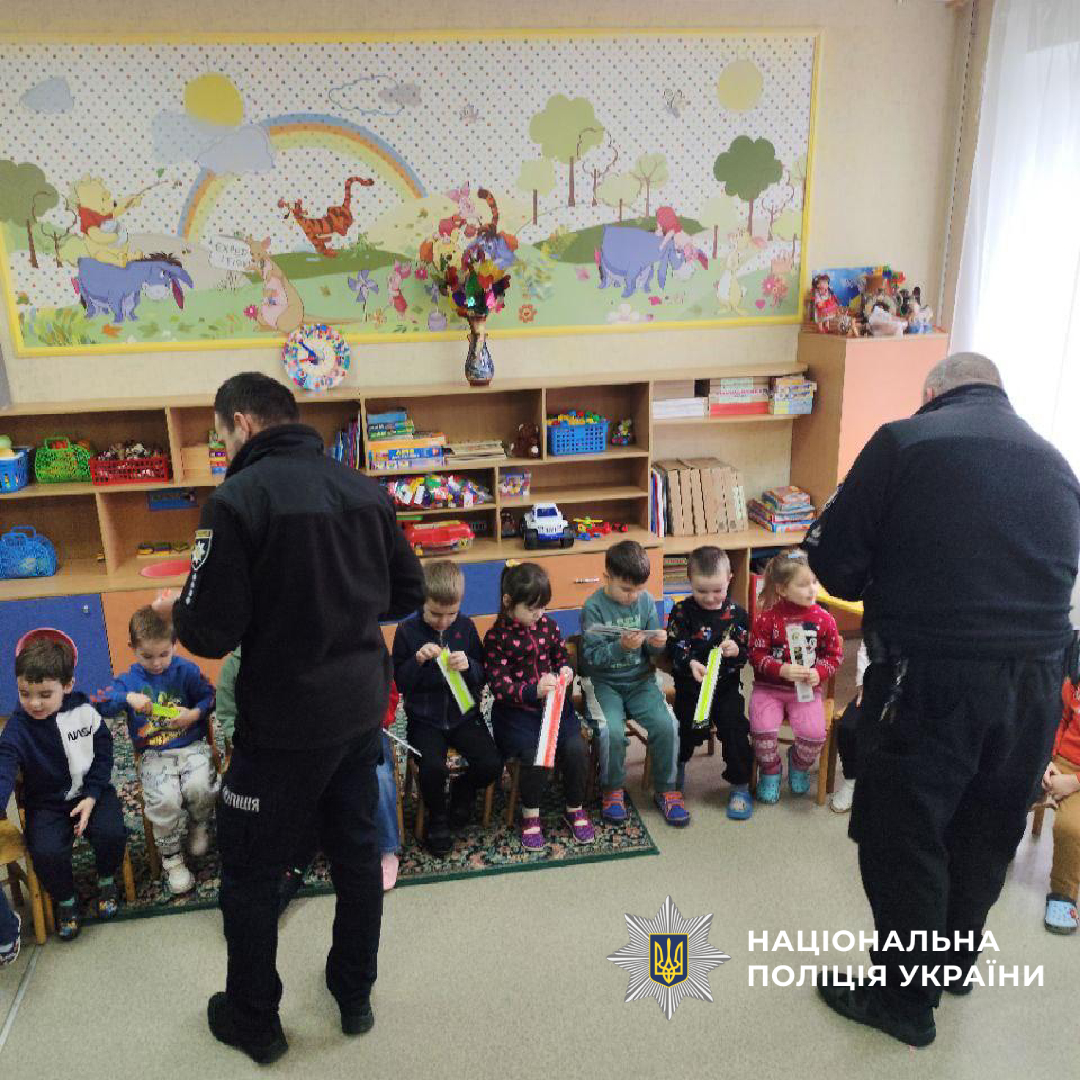 А наприкінці на малюків чекав приємний сюрприз - поліцейські подарували дітям світловідбивні браслети, щоб кожен був помітним і безпечним у темну пору доби.