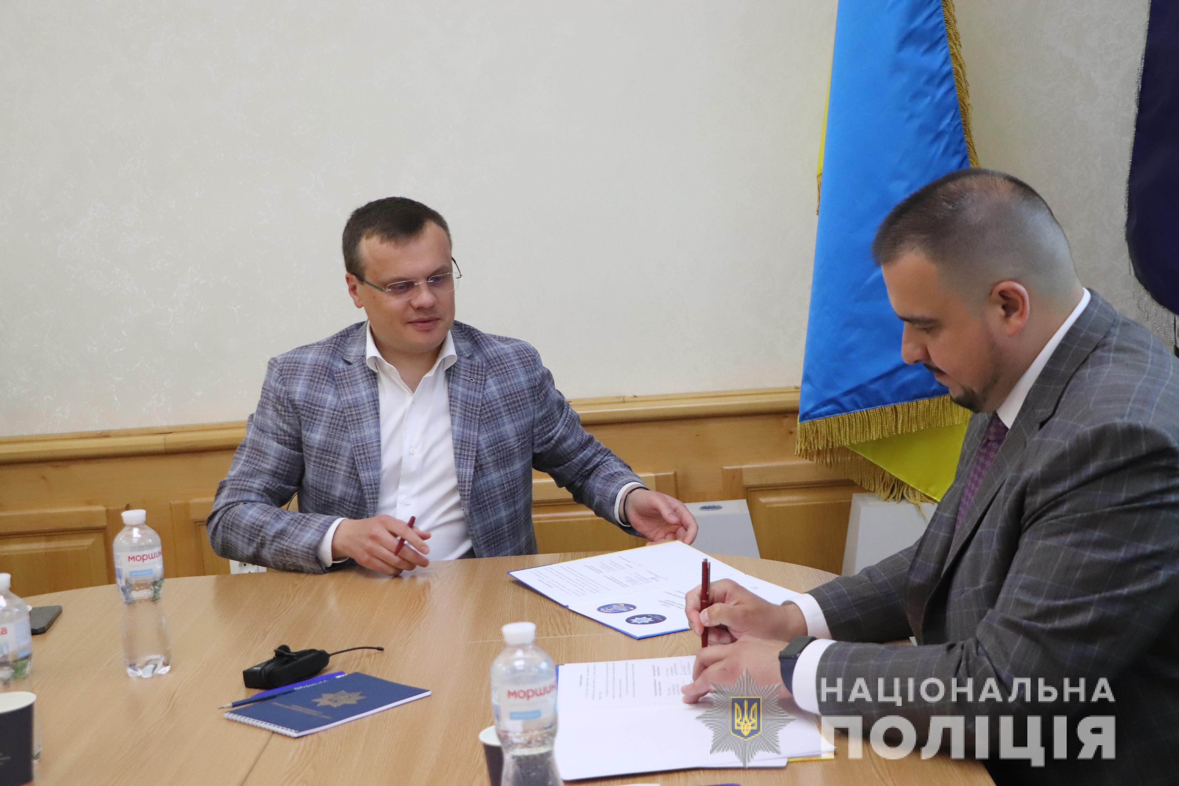 Очільник обласного главку поліції Андрій Рубель разом з представниками Головного управління Державної податкової служби у Харківській області – начальником Артемом Єфремовим і його заступником – Андрієм Рябцем обговорили основні умови співпраці, після чого підписали Угоду.