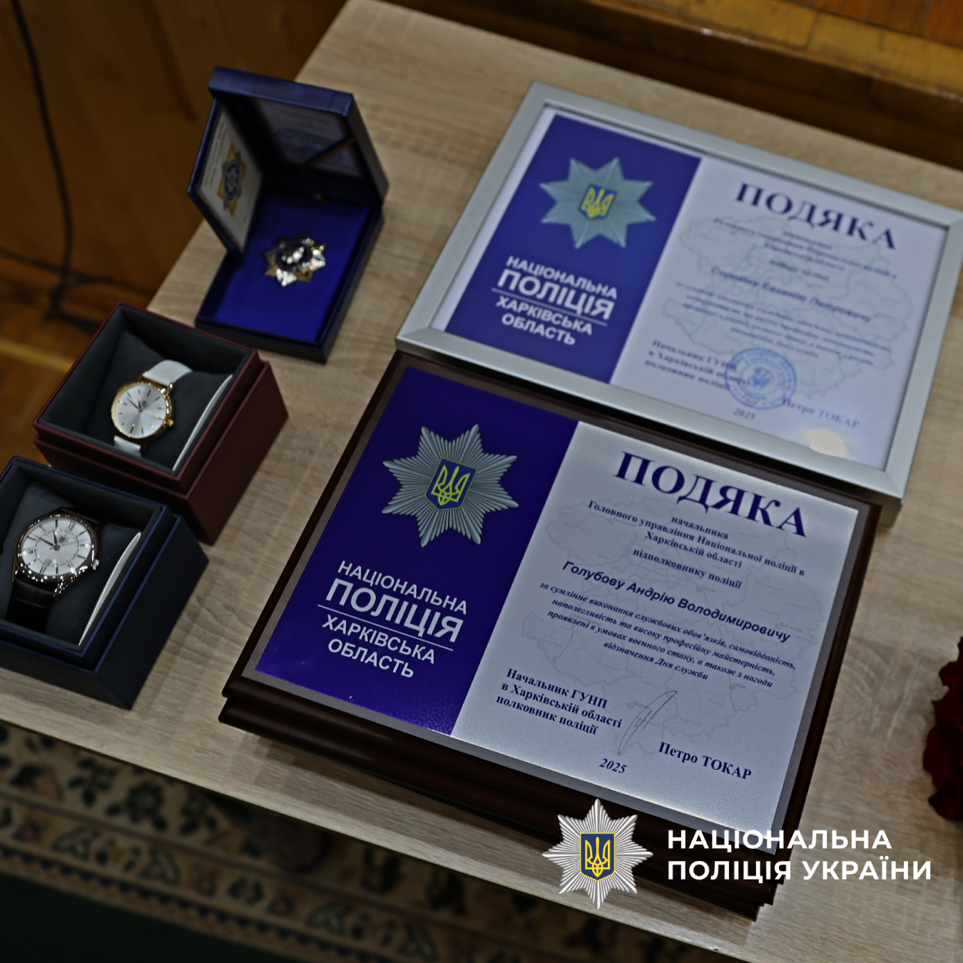 З нагоди свята працівники підрозділу отримали відомчі нагороди від імені керівництва Головного управління Національної поліції в Харківській області.